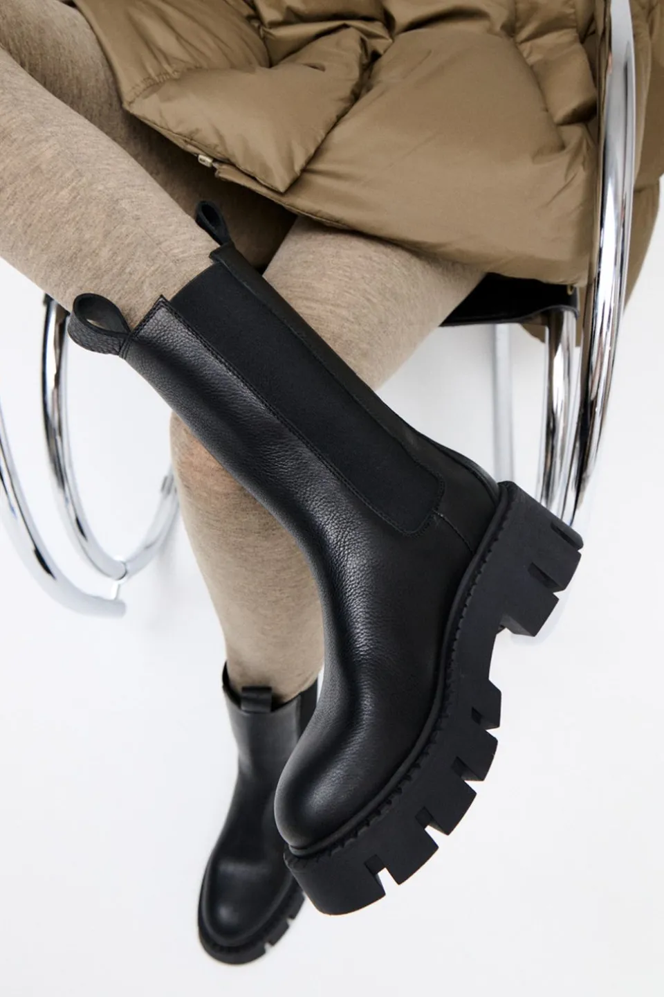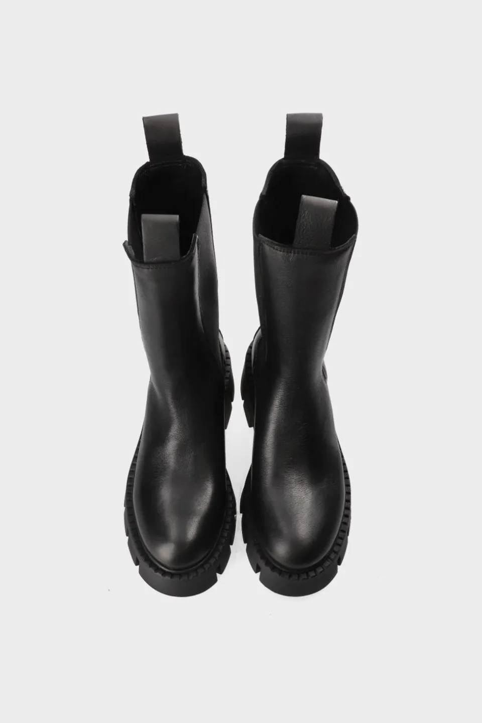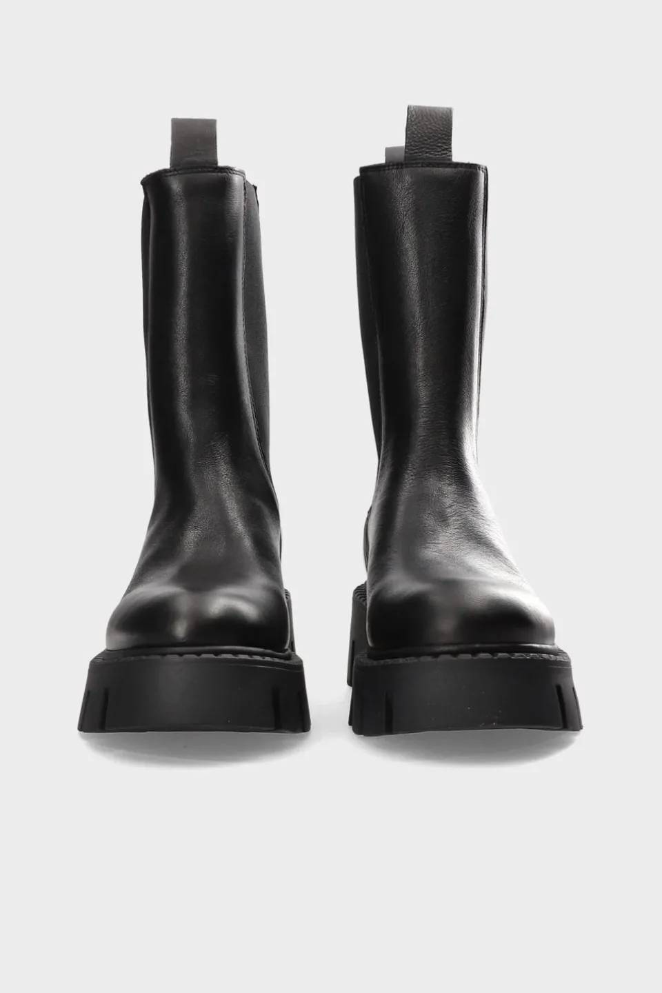 In Het Zwart. Hoge Chelsea Boots Gemaakt Van Glad Leer. Minimalistisch Silhouet Met Dikke Elementen. Elastische Zijpanelen. Geborduurde Details. Trek Lussen Aan De Schacht. Logo Aan De Buitenkant. Ronde Neus. Robuuste Plateauzool Van Rubber Met Blokhak En Opvallend Profiel. Clean Yet Chunky – Chelsea-Laarzen In Een Nieuw Ontwerp.Onze Schoenen Zijn Ontworpen In Kopenhagen En Gemaakt In Europa. Het Leer Is Afkomstig Van Geselecteerde, Door Een Familie Gerunde Fabrieken In Italië.