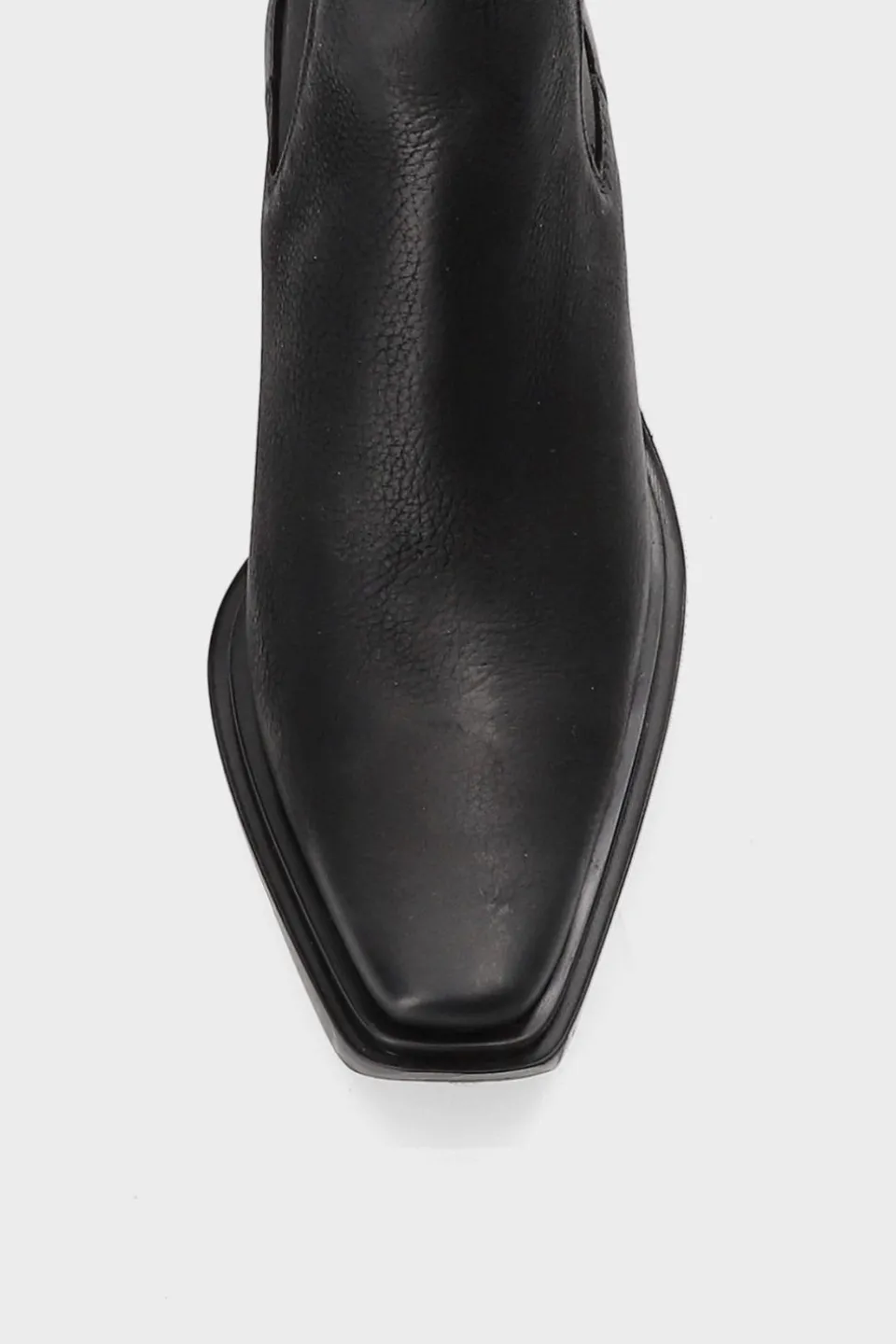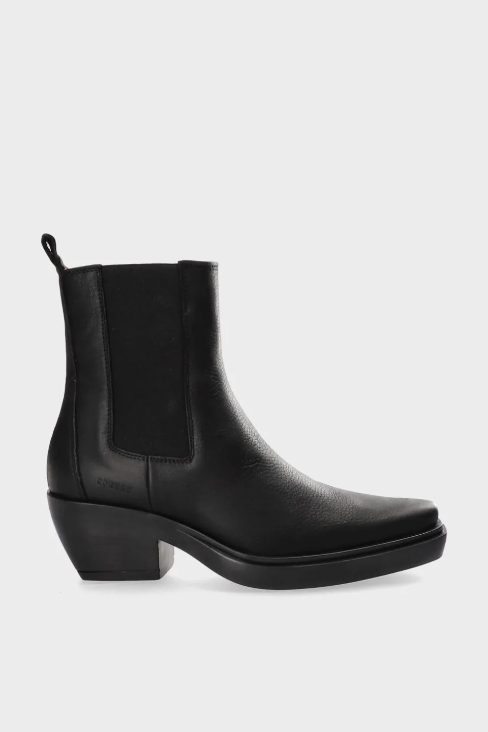 In Het Zwart. Middelhoge Chelsea Boots Gemaakt Van Gewaxt Nubuckleer. Texano-Geïnspireerd Silhouet. Smalle Schacht. Elastische Zijpanelen. Geborduurde Details. Logo Aan De Buitenkant. Rechthoekig Gevormd, Puntig Teengedeelte. Trek Het Lusje Aan De Achterkant. Gladde Rubberen Zool Met Schuine Blokhak. Minimalistische Texano-Enkellaarzen In Een Monochrome Look.Onze Schoenen Zijn Ontworpen In Kopenhagen En Gemaakt In Europa. Het Leer Komt Uit Geselecteerde, Door Een Familie Gerunde Fabrieken In Italië.