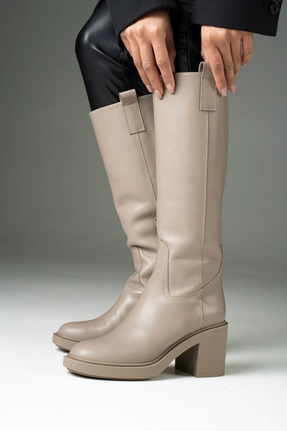 In Fango. Hoge Laarzen Gemaakt Van Glad Leer. Silhouet Geïnspireerd Op Rijlaarzen. Met Geborduurde Details En Een Ritssluiting Onderaan Aan De Binnenzijde. Trek Lussen Aan De Schacht. Een Expressieve Stijl Die Een Elegante Indruk Achterlaat.Onze Schoenen Zijn Ontworpen In Kopenhagen En Vervaardigd In Europa. Het Leer Komt Uit Geselecteerde, Door Een Familie Gerunde Fabrieken In Italië.