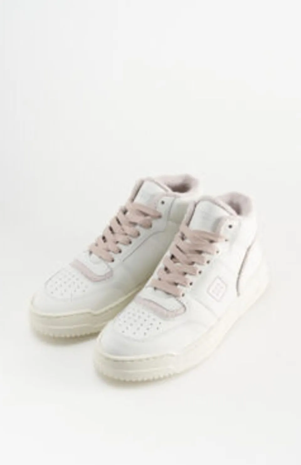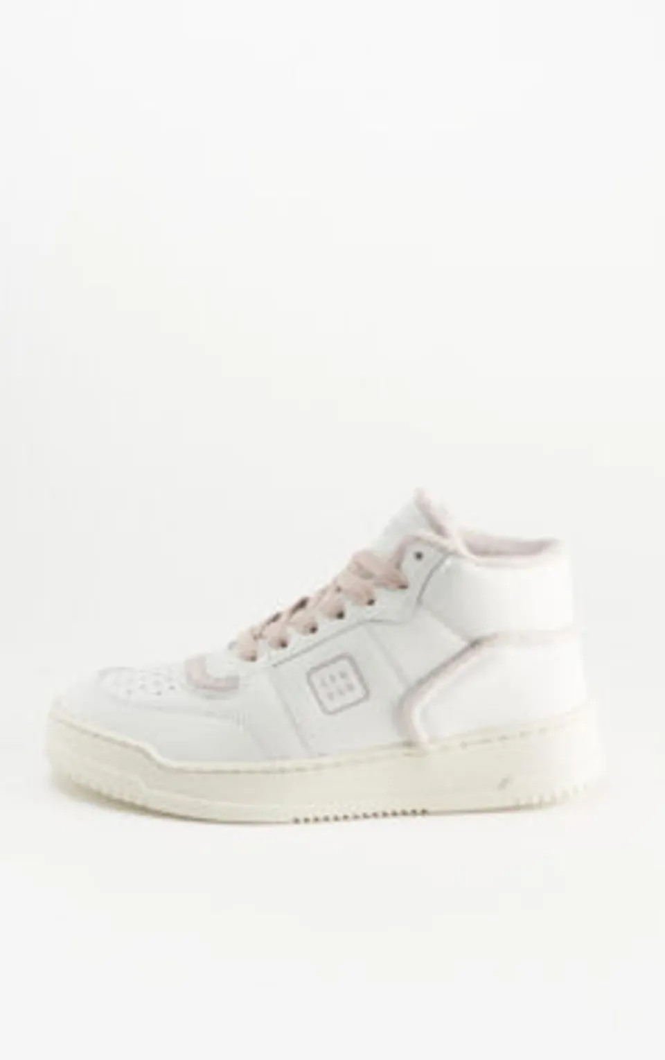 In Wit & Roze. Hoge Sneakers Gemaakt Van Glad Leer. Retrosilhouet. Gevoerde Schacht. Contrasterende Elementen Met Geborduurde Details En Kantpatronen. Logo-Statement In Reliëf Aan De Buitenkant. Vetersluiting Aan De Voorkant. Ronde Dop. Platte Gestructureerde Rubberen Zool. Een Expressieve Retrostijl Met Kleurrijke Accenten.Onze Schoenen Zijn Ontworpen In Kopenhagen En Vervaardigd In Europa. Het Leer Is Afkomstig Van Geselecteerde, Door Een Familie Gerunde Fabrieken In Italië.