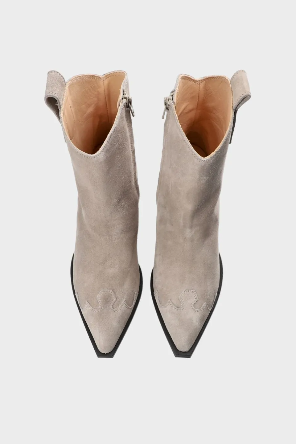 In Lichte Steen. Enkelhoge Texano Enkellaarzen Gemaakt Van Zacht Suède. Slank Silhouet. Brede Schacht. Contrasterende Elementen Met Applicaties En Geborduurde Details. Rits Aan De Binnenkant. Trek De Lus Aan De Buitenkant. Rechthoekig Gevormd, Spitse Neus. Gladde Rubberen Zool Met Schuine Blokhak. Minimalistische Enkellaarzen In Texano-Stijl.Onze Schoenen Zijn Ontworpen In Kopenhagen En Gemaakt In Europa. Het Leer Is Afkomstig Van Geselecteerde, Door Een Familie Gerunde Fabrieken In Italië.