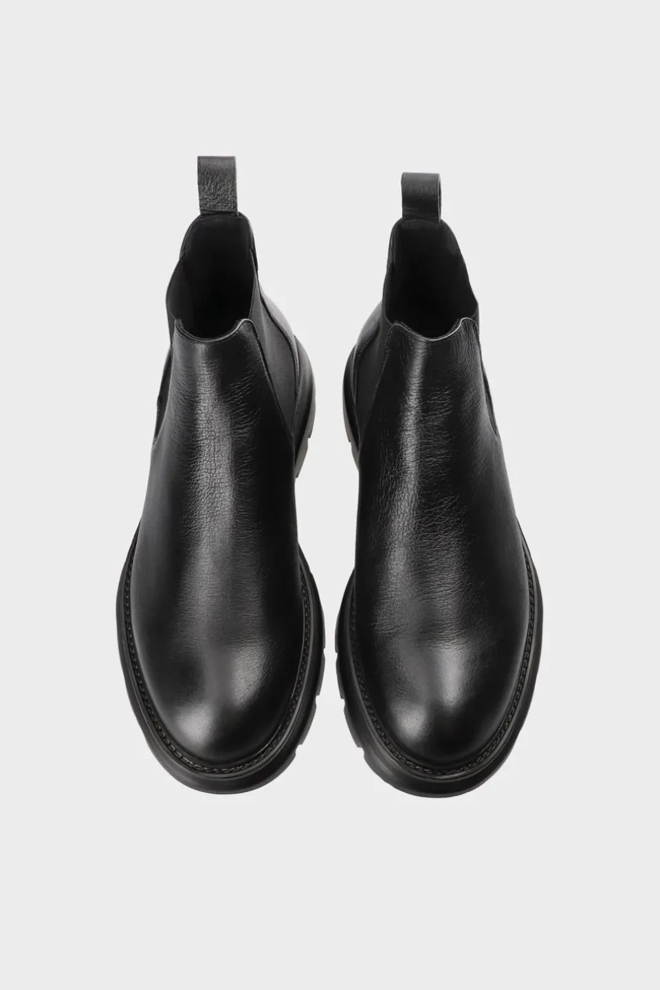 In Het Zwart. Chelsealaarzen Gemaakt Van Glad Leer. Laag Chelsea-Silhouet. Iets Taps Toelopende Punt. Elastische Inzetstukken. Trek De Lus Aan De Schacht. Goudkleurig Logo Aan De Buitenkant. Minimalistische Chelsea’S Met Een Sportieve Twist.Onze Schoenen Zijn Ontworpen In Kopenhagen En Gemaakt In Europa. Het Leer Komt Uit Geselecteerde Familiebedrijven In Italië.
