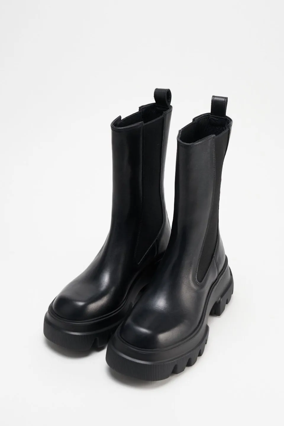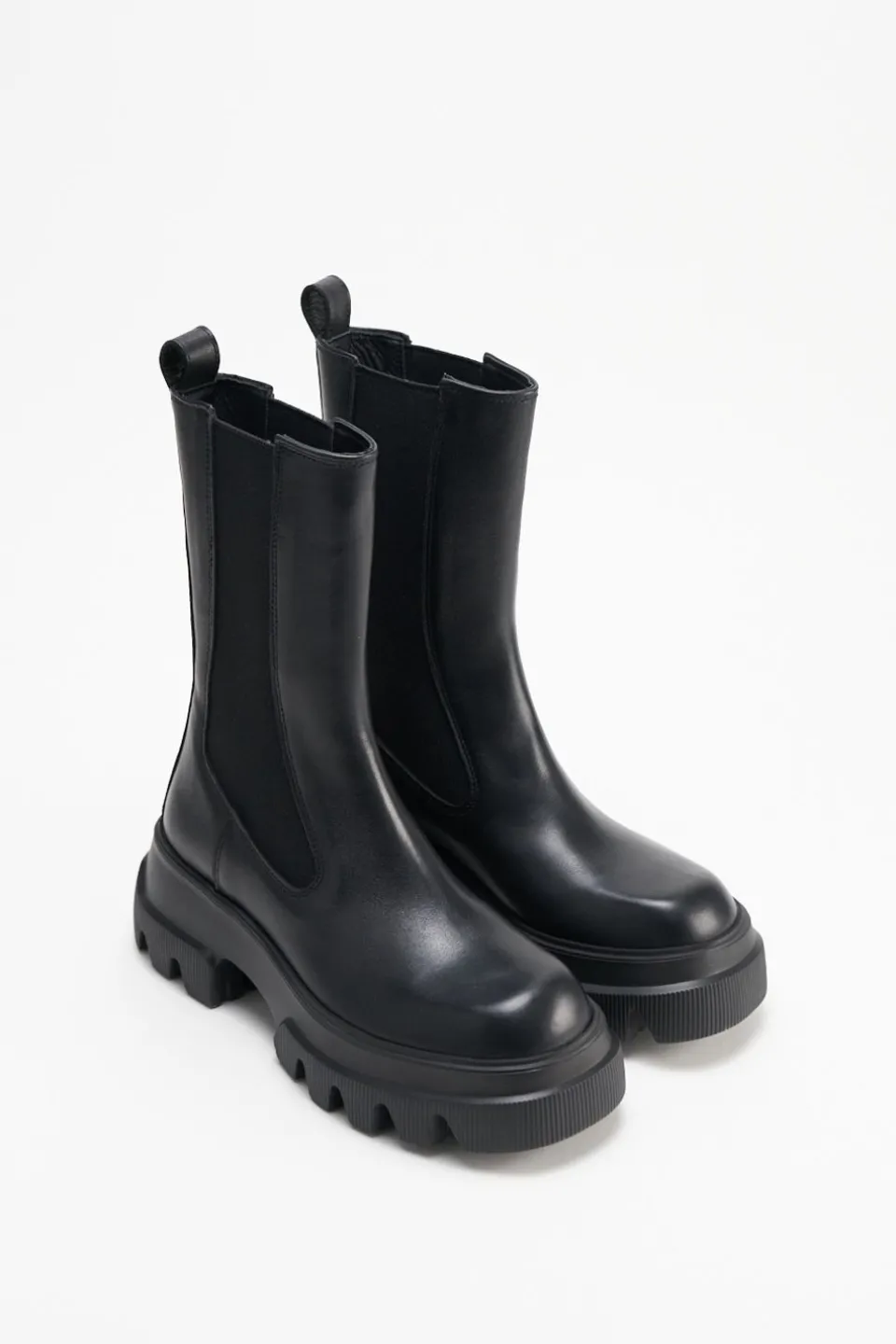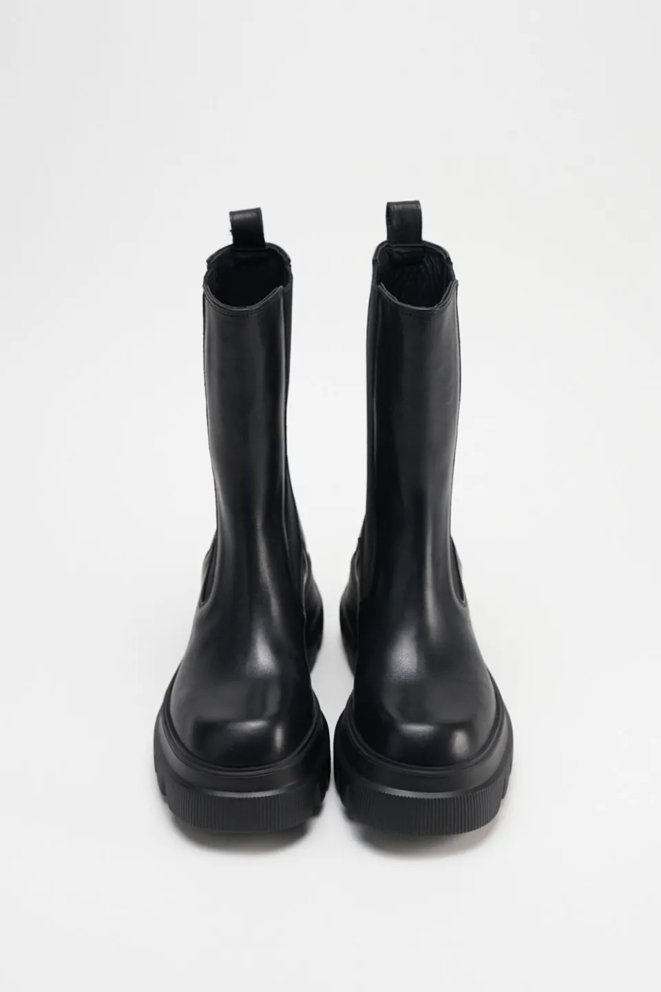 In Het Zwart. Middenhoge Chelsea Boots Gemaakt Van Glad Leer. Grof Silhouet. Met Elastische Inzetstukken. Trek De Lus Aan De Schacht. Iets Vierkante Dop. Ga De Strijd Aan Met Chelsea’S Die Je Overal Mee Naartoe Nemen.Onze Schoenen Zijn Ontworpen In Kopenhagen En Gemaakt In Europa. Het Leer Komt Uit Geselecteerde, Door Een Familie Gerunde Fabrieken In Italië.