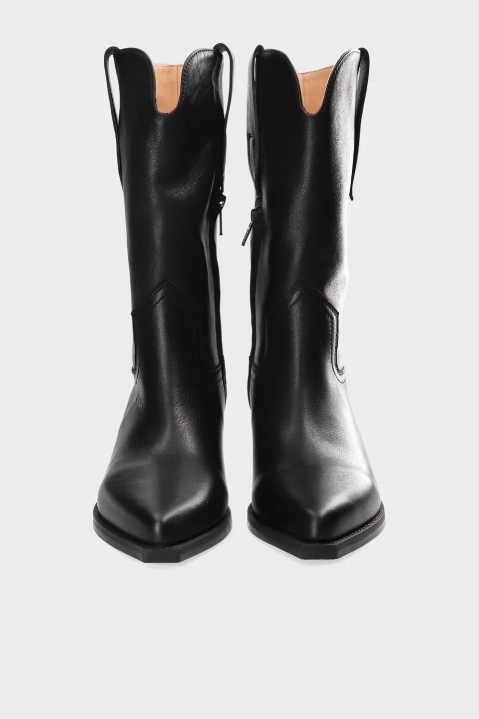 In Het Zwart. Middelhoge Texano Enkellaarzen Gemaakt Van Glad Leer. Slank Silhouet. Brede Schacht. Contrasterende Elementen Met Geborduurde Details. Rits Aan De Binnenkant. Kleurcontrasterende Binnenvoering. Treklussen Aan De Zijkant. Rechthoekig Gevormd, Spitse Neus. Gladde Zool Met Schuine Blokhak. Elegante Enkellaarsjes In Texano-Stijl.Onze Schoenen Zijn Ontworpen In Kopenhagen En Gemaakt In Europa. Het Leer Is Afkomstig Van Geselecteerde, Door Een Familie Gerunde Fabrieken In Italië.