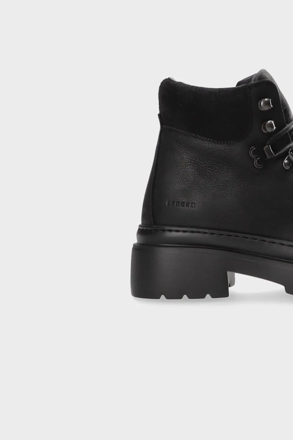 In Het Zwart. Enkelhoge Veterschoenen Van Gewaxt Nubuckleer. Trekking Silhouet. Vintage Elementen En Geborduurde Details. Vetersluiting Aan De Voorkant. Gevoerde Schacht. Ronde Neus. Gestikte Rubberen Zool Met Licht Profiel, Blokhak En Spatbord. Trekkingschoenen Met Nieuwe Elementen En Vintage Details.Onze Schoenen Zijn Ontworpen In Kopenhagen En Gemaakt In Europa. Het Leer Is Afkomstig Van Geselecteerde, Door Een Familie Gerunde Fabrieken In Italië.