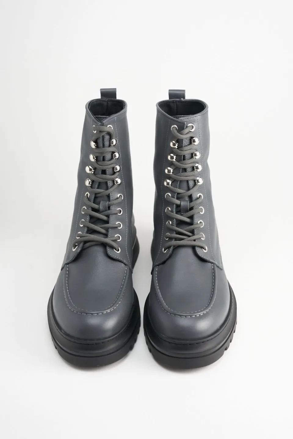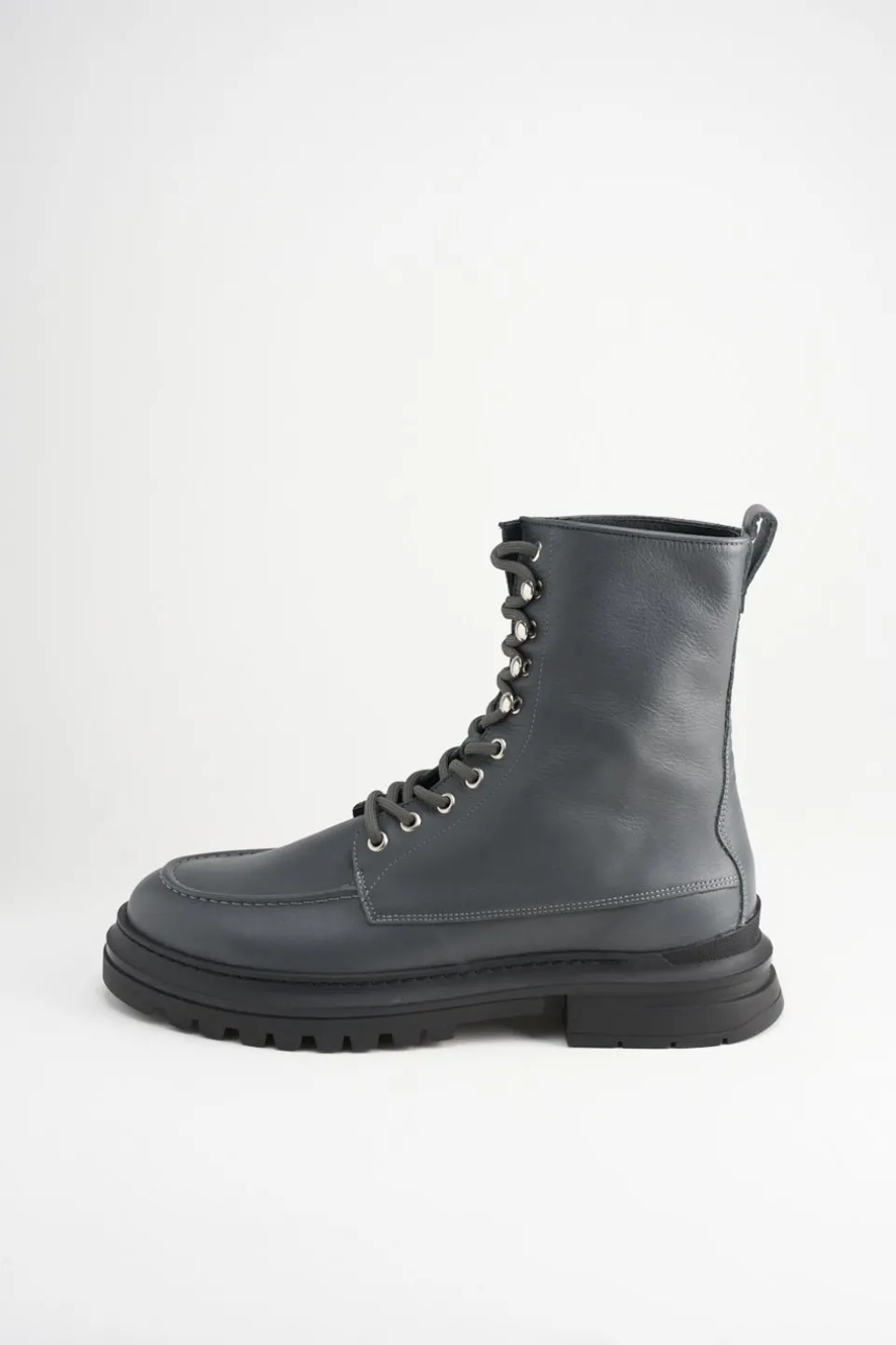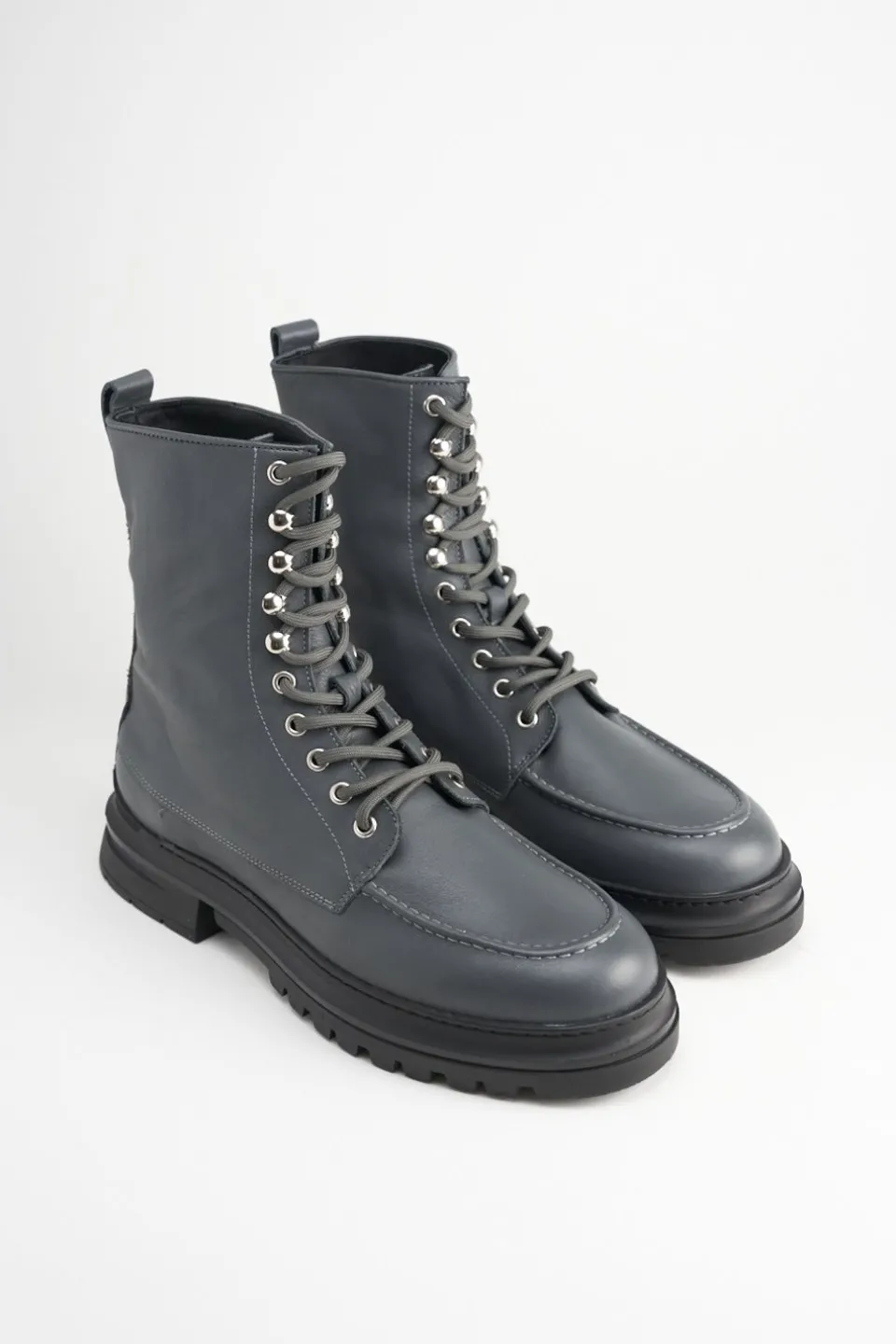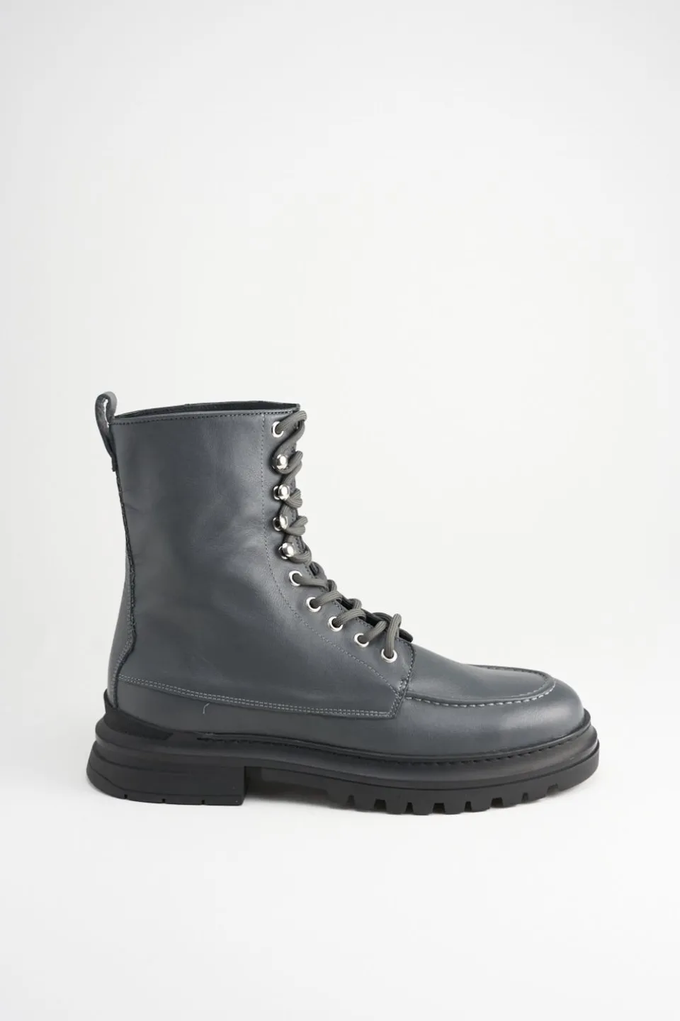 In Grafiet. Veterlaarzen Gemaakt Van Glad Leer Met Een Matte Afwerking. Enkelhoog Silhouet. Afgeronde Dop. Mocassinelementen En Geborduurde Details. Zilverkleurige Oogjes En Haken. Tonale Veters. Trek De Lus Aan De Schacht. Verrassende Details Ontmoeten Alledaags Comfort.Onze Schoenen Zijn Ontworpen In Kopenhagen En Gemaakt In Europa. Het Leer Komt Uit Geselecteerde, Door Een Familie Gerunde Fabrieken In Italië.