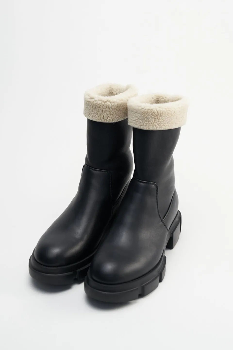 In Het Zwart. Enkellaarzen Gemaakt Van Veganistisch Nappaleer Met Teddyvoering. Getailleerd Silhouet. Schacht Voor Het Oprollen. Ronde Dop. Contrasterende Elementen En Geborduurde Details. Uitneembare Binnenzool. Een Veelzijdige Stijl Die U Flexibel Houdt.Onze Schoenen Zijn Ontworpen In Kopenhagen En Gemaakt In Europa. Het Leer Is Afkomstig Van Geselecteerde, Door Een Familie Gerunde Fabrieken In Italië.