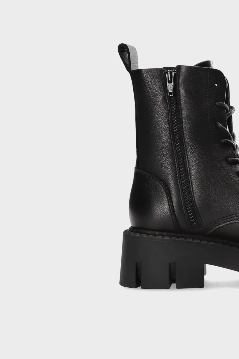 In Het Zwart. Middelhoge Laarzen Gemaakt Van Geitenleer. Gevechtsgeïnspireerd Silhouet. Eenvoudige Inzetstukken En Stiksels. Logo Aan De Buitenkant. Vetersluiting. Binnenkant Met Ritssluiting. Iets Taps Toelopend Teengedeelte. Weersbestendig. Wees Voorbereid Op Koudere Dagen Met Deze Stevige, Op Gevechten Geïnspireerde Laarzen.Onze Schoenen Zijn Ontworpen In Kopenhagen En Gemaakt In Europa. Het Leer Komt Uit Geselecteerde, Door Een Familie Gerunde Fabrieken In Italië.