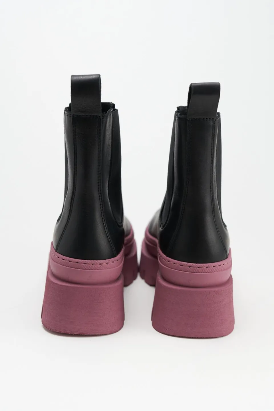 In Zwart En Fuchsia. Chelsealaarzen Gemaakt Van Glad Leer. Enkelhoog Silhouet Met Een Ronde Neus. Elastische Inzetstukken. Trek De Lus Aan De Schacht. Goudkleurig Logo Aan De Buitenkant. Expressieve Platformzolen Maken Deze Stijl Tot Een Blikvanger.Onze Schoenen Zijn Ontworpen In Kopenhagen En Vervaardigd In Europa. Het Leer Komt Uit Geselecteerde Familiebedrijven In Italië.