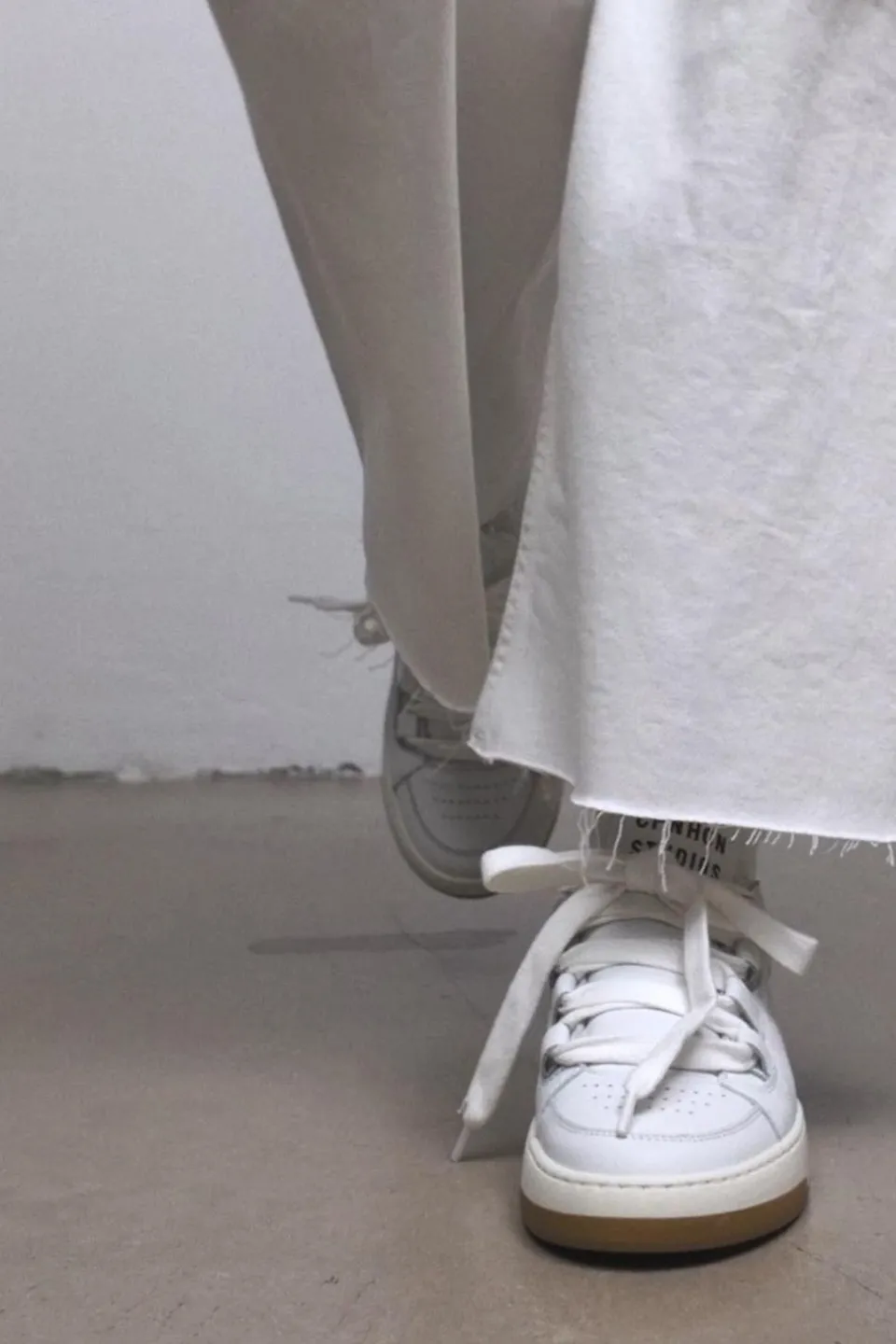 In Het Wit. Lage Sneakers Gemaakt Van Zacht, Glad Leer. Extra Dik Silhouet. Contrasterende Elementen Met Geborduurde Details En Geperforeerde Patronen. Trek Het Lusje Aan De Achterkant. Gewatteerde Tong Met Opvallende Branding. Vetersluiting Aan De Voorkant Met Extra Brede Veters. Ronde Dop. Tweekleurige, Iets Verhoogde Zool. Een Relaxte Skaterstijl Met Opvallende Designelementen.Onze Schoenen Zijn Ontworpen In Kopenhagen En Gemaakt In Europa. Het Leer Is Afkomstig Van Geselecteerde, Door Een Familie Gerunde Fabrieken In Italië.
