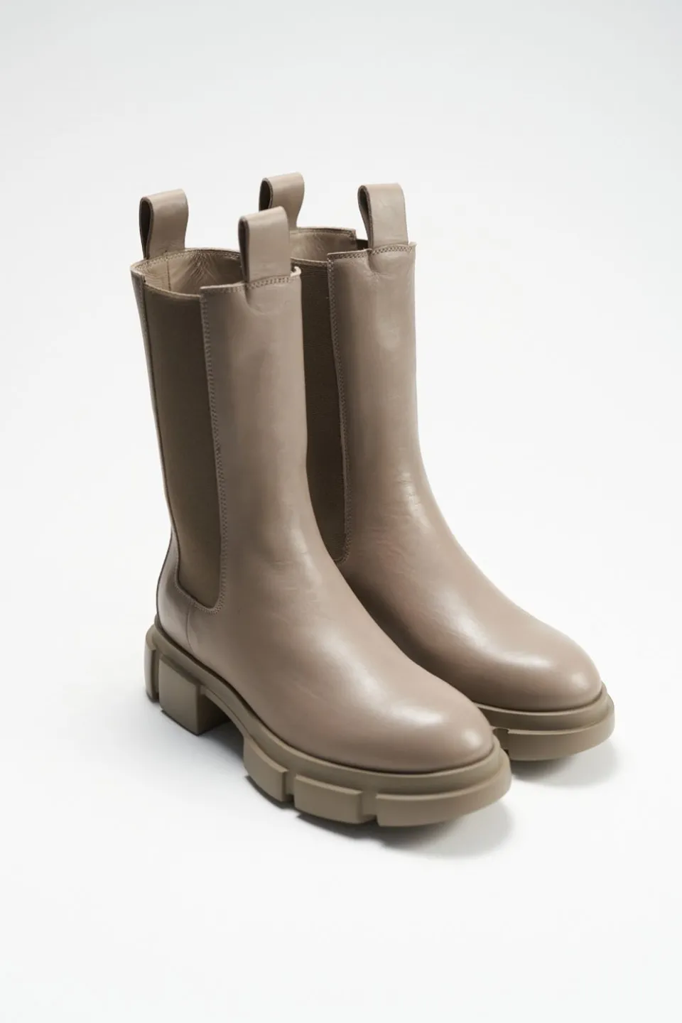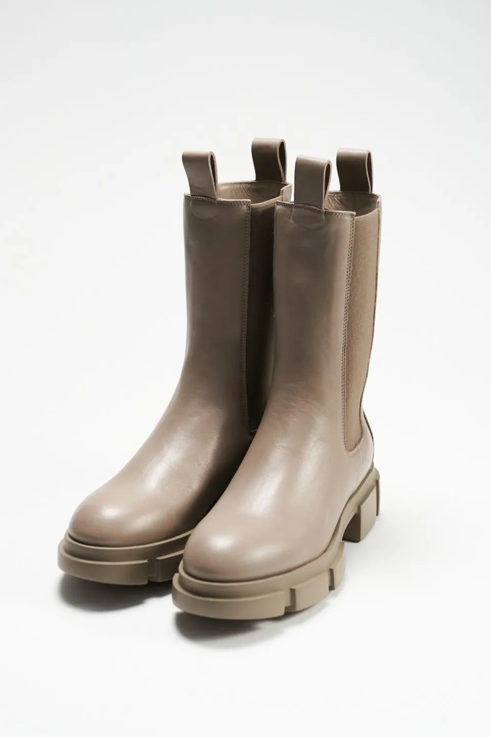 In Fango. Midden Chelsea-Laarzen Gemaakt Van Glad Leer Met Een Grof Profiel. Langwerpig Chelsea-Silhouet. Elastische Inzetstukken. Ronde Dop. Twee Treklussen Op De Schacht. Subtiele Branding Aan De Buitenkant. Een Ontspannen Maar Toch Expressieve Stijl Die De Aandacht Trekt.Onze Schoenen Zijn Ontworpen In Kopenhagen En Vervaardigd In Europa. Het Leer Komt Uit Geselecteerde, Door Een Familie Gerunde Fabrieken In Italië.