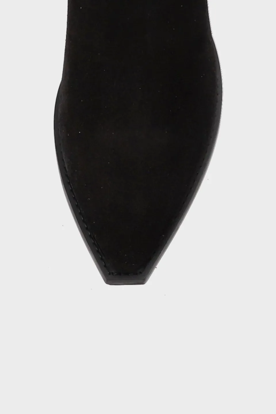 In Het Zwart. Middelhoge Texano Enkellaarzen Gemaakt Van Suède. Slank Silhouet. Brede Schacht. Contrasterende Elementen Met Geborduurde Details. Rits Aan De Binnenkant. Kleurcontrasterende Binnenvoering. Treklussen Aan De Zijkant. Rechthoekig Gevormd, Spitse Neus. Gladde Zool Met Schuine Blokhak. Elegante Enkellaarsjes In Texano-Stijl.Onze Schoenen Zijn Ontworpen In Kopenhagen En Gemaakt In Europa. Het Leer Is Afkomstig Van Geselecteerde, Door Een Familie Gerunde Fabrieken In Italië.