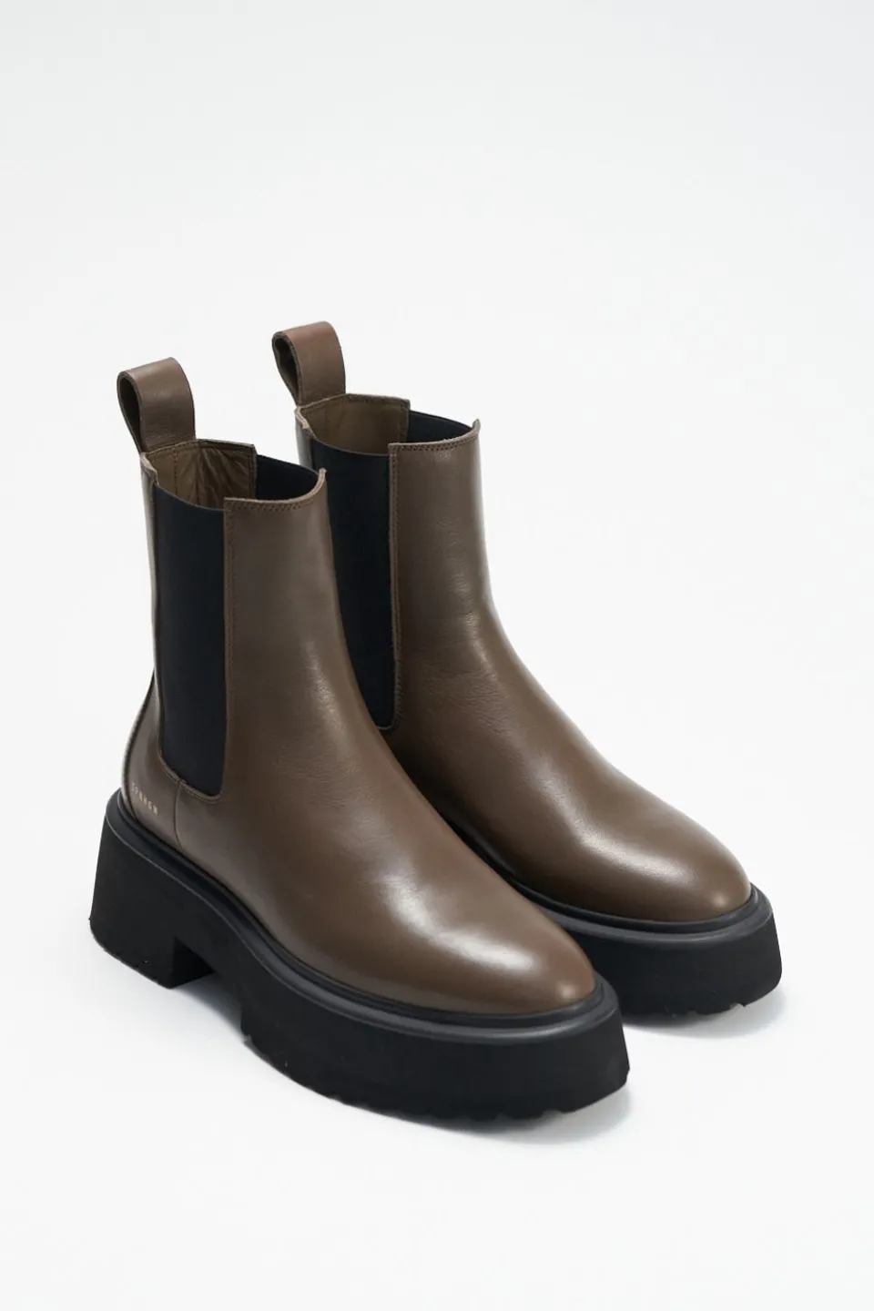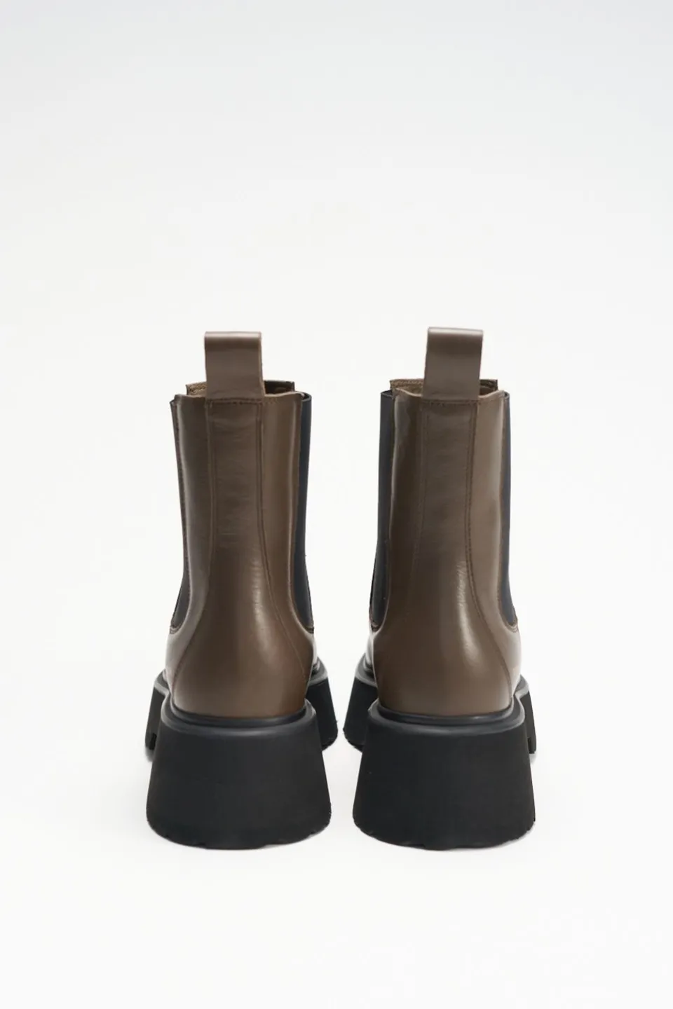 In Kaki. Chelsealaarzen Gemaakt Van Glad Leer. Enkelhoog Silhouet. Puntig. Elastische Inzetstukken. Subtiele Branding Aan De Buitenkant. Trek De Lus Aan De Schacht. Een Tijdloze Klassieker Met Iets Speciaals.Onze Schoenen Zijn Ontworpen In Kopenhagen En Vervaardigd In Europa. Het Leer Komt Uit Geselecteerde Familiebedrijven In Italië.