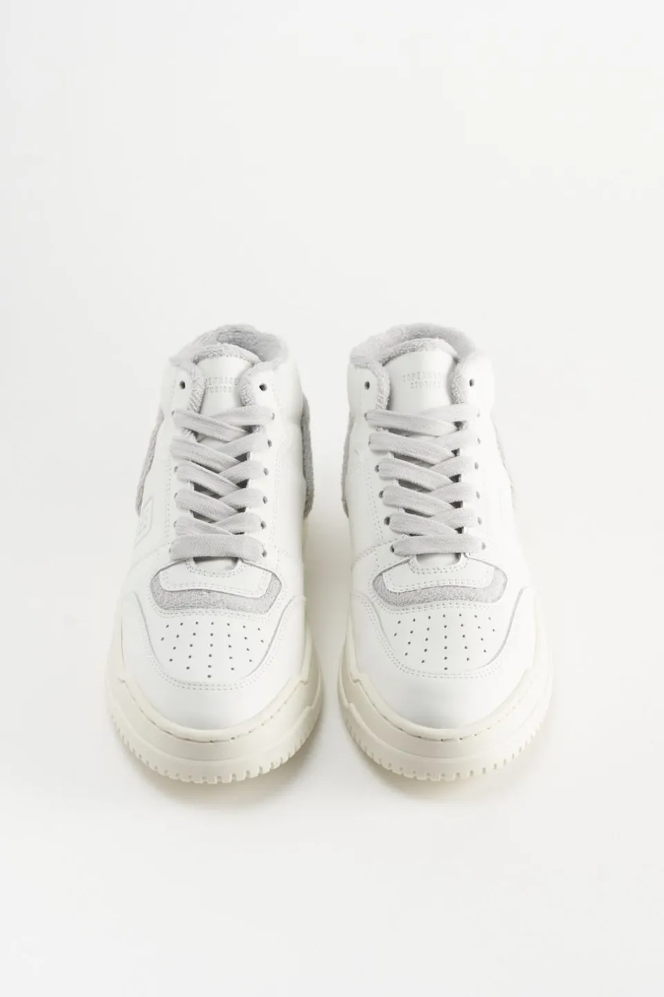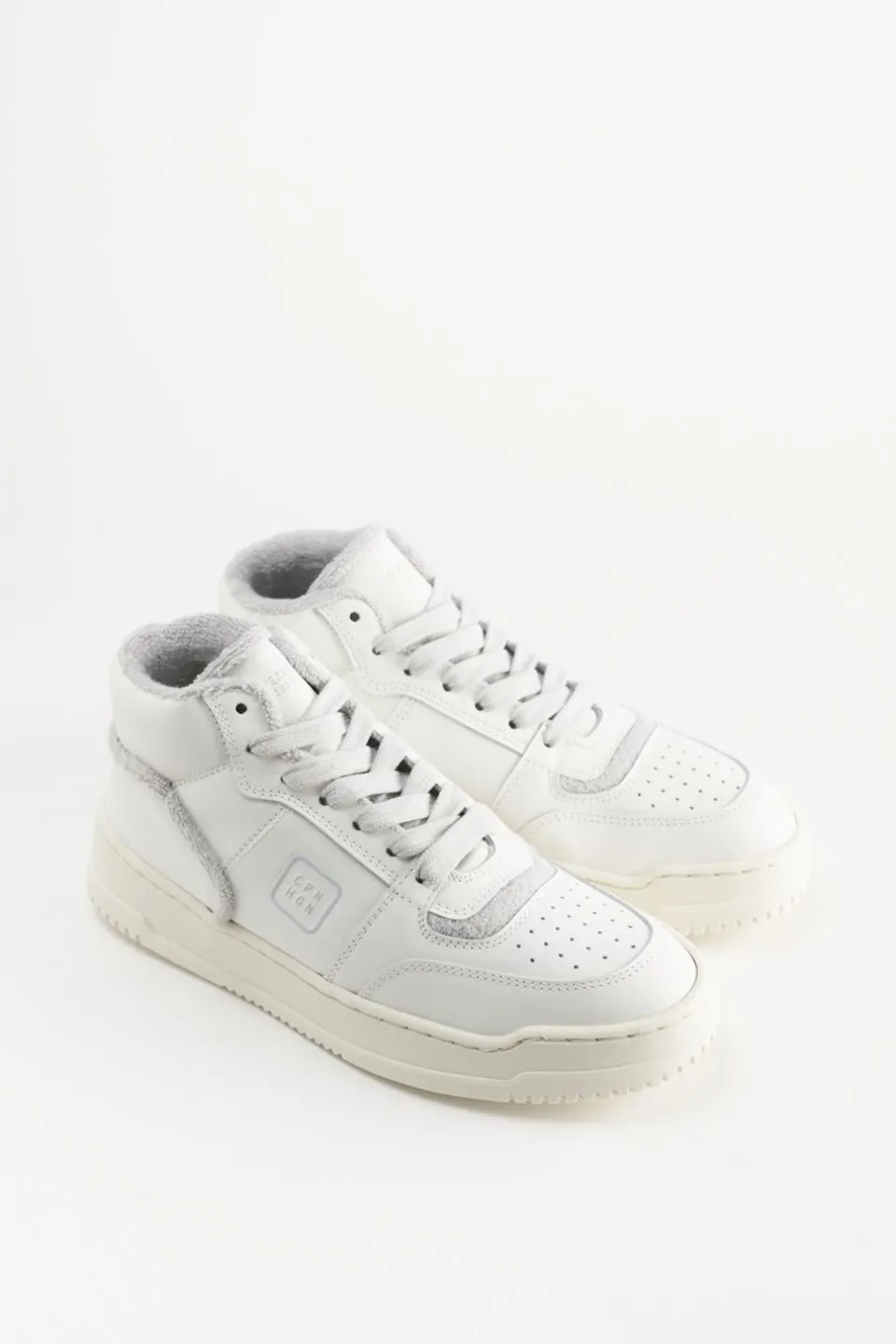 In Wit En Lichtgrijs. Hoge Sneakers Gemaakt Van Glad Leer. Retrosilhouet. Gevoerde Schacht. Contrasterende Elementen Met Geborduurde Details En Kantpatronen. Logo-Statement In Reliëf Aan De Buitenkant. Vetersluiting Aan De Voorkant. Ronde Dop. Platte Gestructureerde Rubberen Zool. Een Expressieve Retrostijl Met Lichte Accenten.Onze Schoenen Zijn Ontworpen In Kopenhagen En Vervaardigd In Europa. Het Leer Is Afkomstig Van Geselecteerde, Door Een Familie Gerunde Fabrieken In Italië.