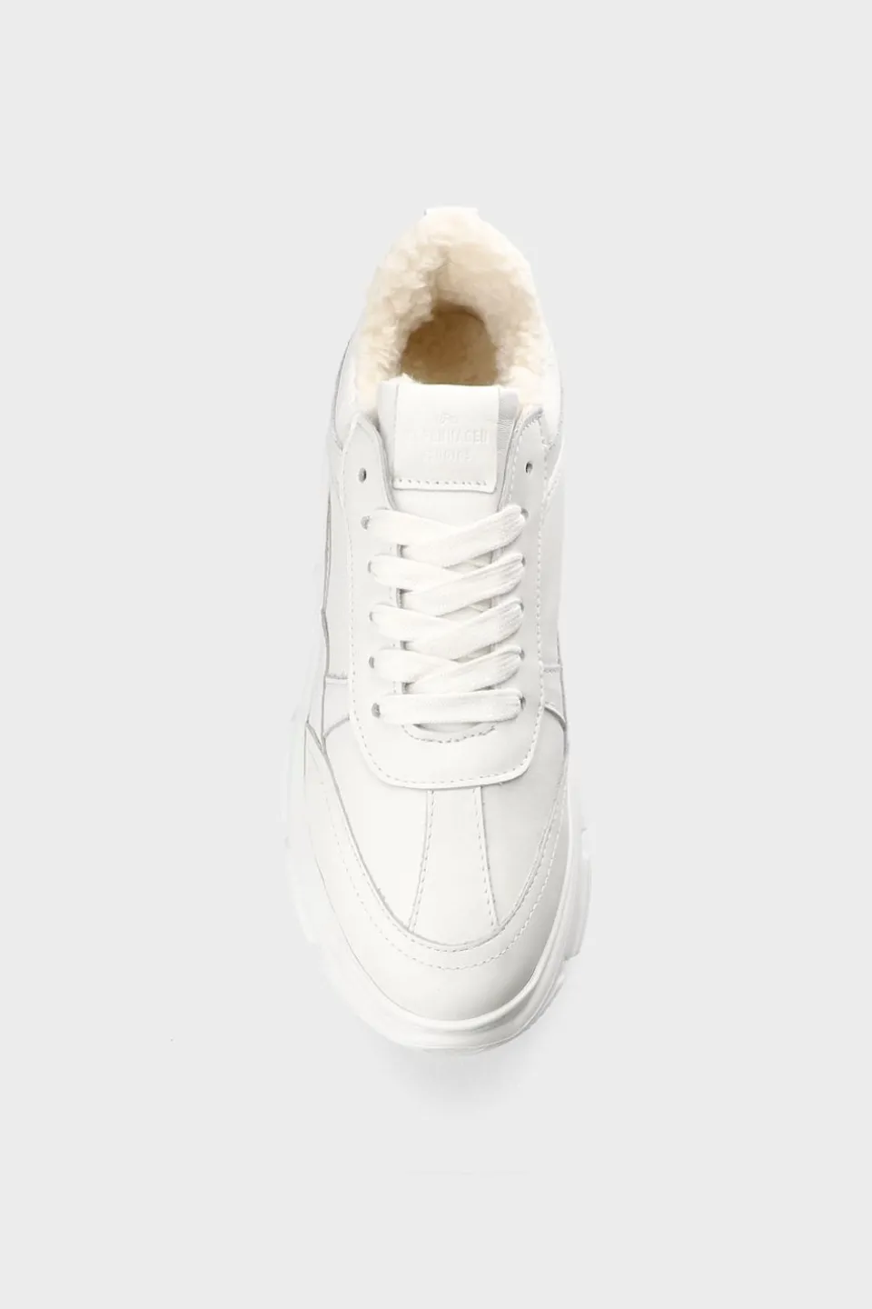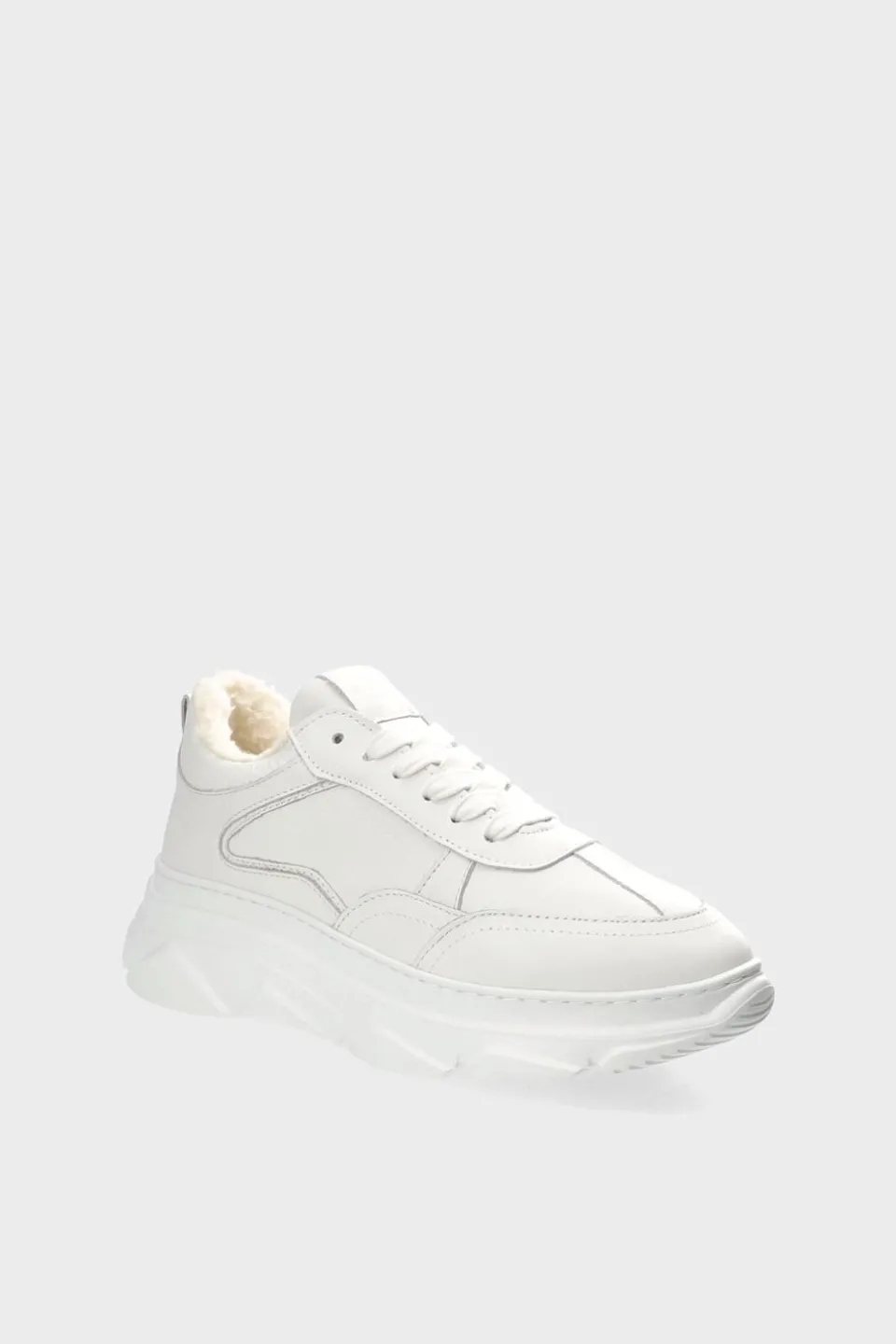 In Het Wit. Lage Sneakers Gemaakt Van Glad Leer. Teddyvoering. Grof Silhouet. Contrasterende Elementen Met Geborduurde Details. Vetersluiting Aan De Voorkant. Logopatch Op De Tong Van De Schoen. Logo Aan De Buitenkant. Trek Het Lusje Aan De Hiel. Ronde Dop. Dikke Platformzool Met Geometrische Details. Dikke Sneakers Voor Een Extra Warme Look.Onze Schoenen Zijn Ontworpen In Kopenhagen En Gemaakt In Europa. Het Leer Komt Uit Geselecteerde, Door Een Familie Gerunde Fabrieken In Italië.