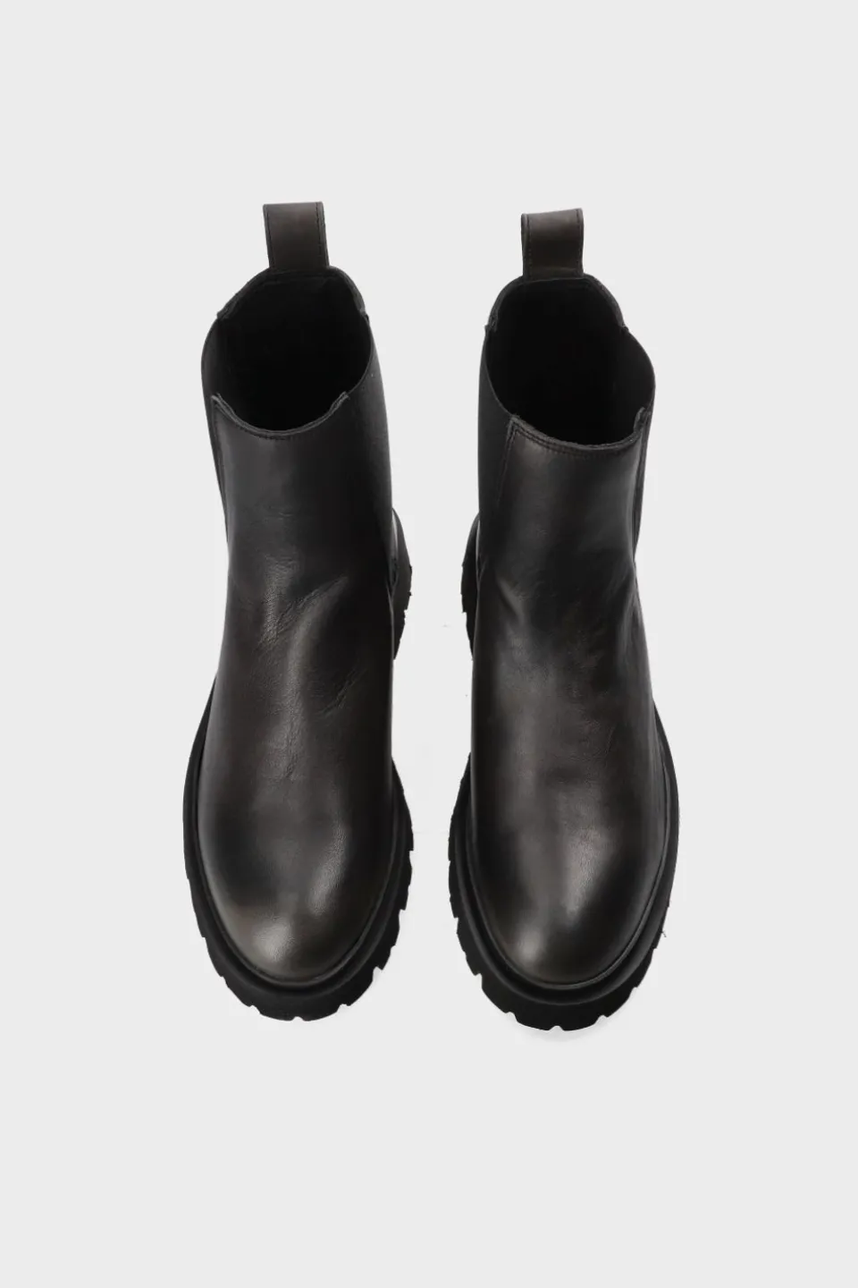 In Gebroken Zwart. Enkelhoge Chelsea Boots Gemaakt Van Vintage Leer. Minimalistisch Silhouet. Elastische Zijpanelen En Geborduurde Details. Trek Het Lusje Aan De Achterkant. Logo Aan De Buitenkant. Ronde Neus. Robuuste Rubberen Zool Met Grof Profiel, Blokhak En Spatbord. Chelsea-Laarzen Met Vintage Flair En Expressieve Elementen.Onze Schoenen Zijn Ontworpen In Kopenhagen En Gemaakt In Europa. Het Leer Komt Uit Geselecteerde, Door Een Familie Gerunde Fabrieken In Italië.