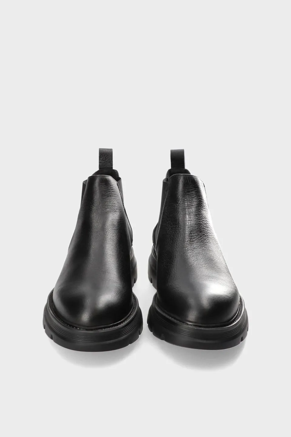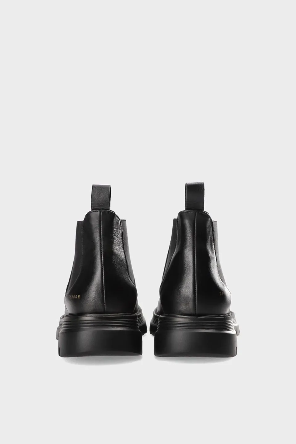 In Het Zwart. Chelsealaarzen Gemaakt Van Glad Leer. Laag Chelsea-Silhouet. Iets Taps Toelopende Punt. Elastische Inzetstukken. Trek De Lus Aan De Schacht. Goudkleurig Logo Aan De Buitenkant. Minimalistische Chelsea’S Met Een Sportieve Twist.Onze Schoenen Zijn Ontworpen In Kopenhagen En Gemaakt In Europa. Het Leer Komt Uit Geselecteerde Familiebedrijven In Italië.