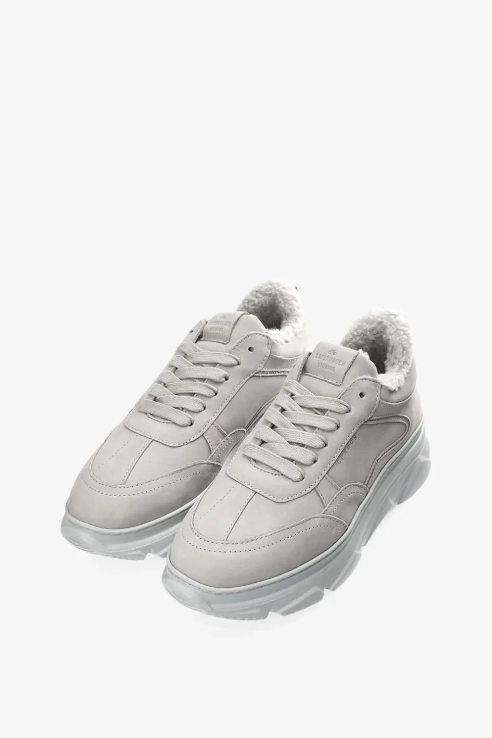 In Lichtgrijs. Lage Sneakers Gemaakt Van Zacht Nubuckleer. Teddyvoering. Grof Silhouet. Contrasterende Elementen Met Geborduurde Details. Vetersluiting Aan De Voorkant. Logopatch Op De Tong Van De Schoen. Logo Aan De Buitenkant. Trek Het Lusje Aan De Hiel. Ronde Dop. Dikke Platformzool Met Geometrische Details. Dikke Sneakers Voor Een Extra Warme Look.Onze Schoenen Zijn Ontworpen In Kopenhagen En Gemaakt In Europa. Het Leer Is Afkomstig Van Geselecteerde, Door Een Familie Gerunde Fabrieken In Italië.