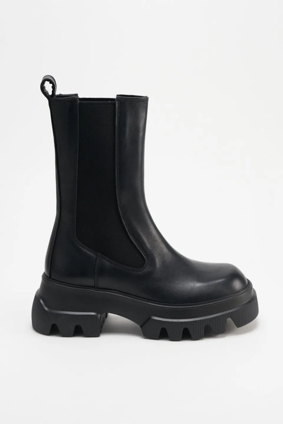 In Het Zwart. Middenhoge Chelsea Boots Gemaakt Van Glad Leer. Grof Silhouet. Met Elastische Inzetstukken. Trek De Lus Aan De Schacht. Iets Vierkante Dop. Ga De Strijd Aan Met Chelsea’S Die Je Overal Mee Naartoe Nemen.Onze Schoenen Zijn Ontworpen In Kopenhagen En Gemaakt In Europa. Het Leer Komt Uit Geselecteerde, Door Een Familie Gerunde Fabrieken In Italië.