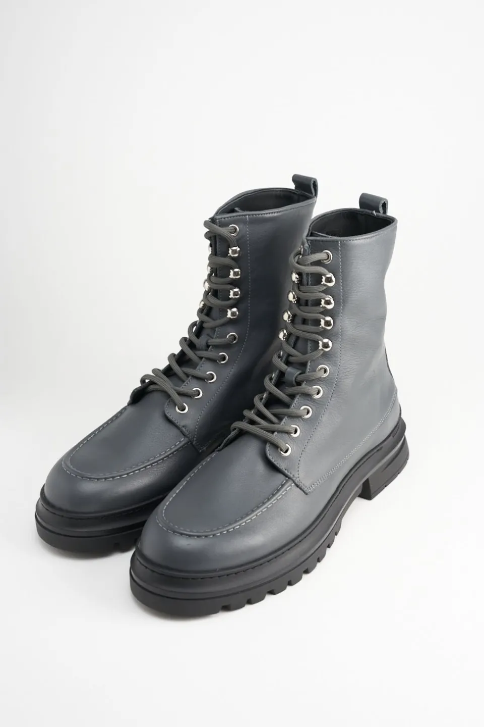In Grafiet. Veterlaarzen Gemaakt Van Glad Leer Met Een Matte Afwerking. Enkelhoog Silhouet. Afgeronde Dop. Mocassinelementen En Geborduurde Details. Zilverkleurige Oogjes En Haken. Tonale Veters. Trek De Lus Aan De Schacht. Verrassende Details Ontmoeten Alledaags Comfort.Onze Schoenen Zijn Ontworpen In Kopenhagen En Gemaakt In Europa. Het Leer Komt Uit Geselecteerde, Door Een Familie Gerunde Fabrieken In Italië.