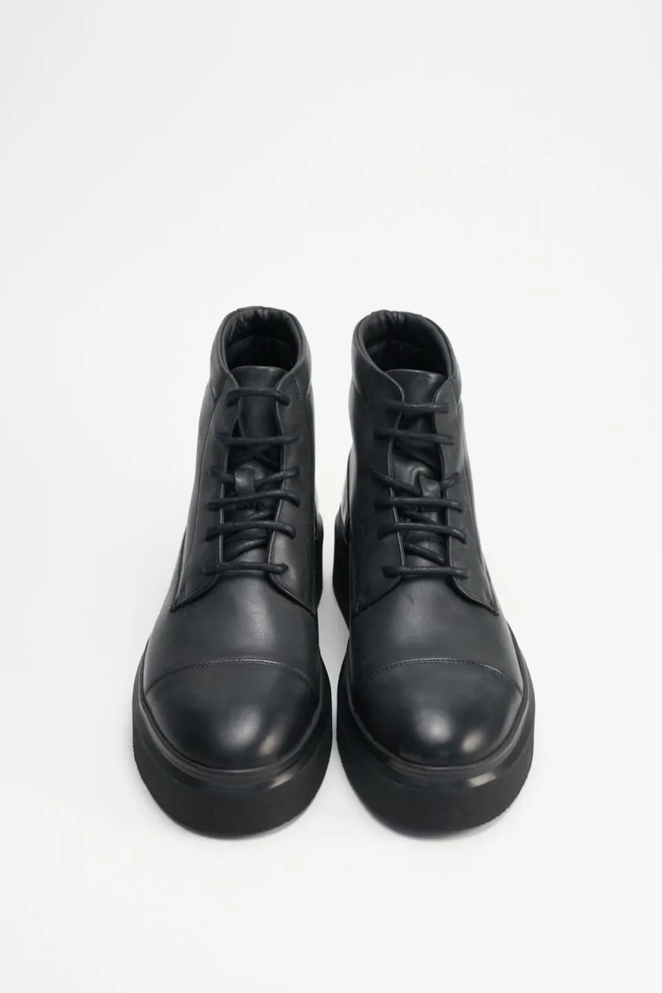 In Het Zwart. Veterlaarzen Gemaakt Van Gewaxt Leer Met Een Gepolijste Afwerking. Enkelhoog Silhouet. Ronde Dop. Met Contrasterende Elementen, Geborduurde Details En Tonale Veters. Gestempeld Logo Aan De Buitenkant. Een Elegante Stijl Met Subtiele Details.Onze Schoenen Zijn Ontworpen In Kopenhagen En Gemaakt In Europa. Het Leer Komt Uit Geselecteerde, Door Een Familie Gerunde Fabrieken In Italië.
