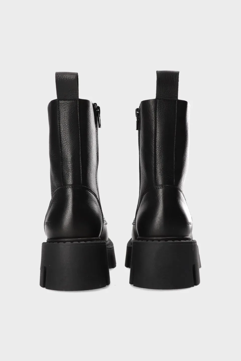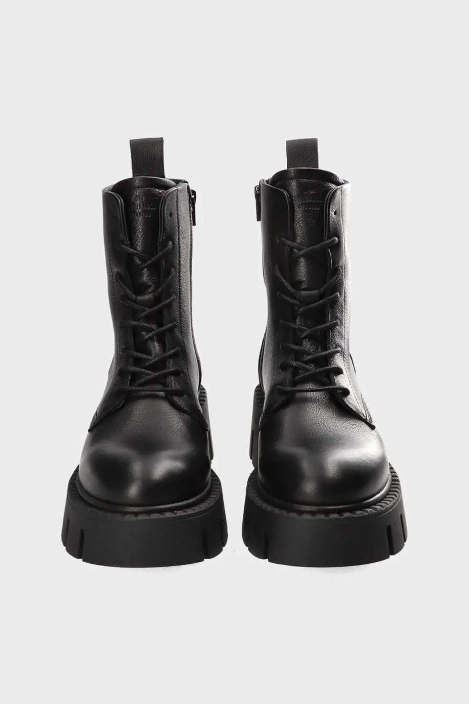 In Het Zwart. Middelhoge Laarzen Gemaakt Van Geitenleer. Gevechtsgeïnspireerd Silhouet. Eenvoudige Inzetstukken En Stiksels. Logo Aan De Buitenkant. Vetersluiting. Binnenkant Met Ritssluiting. Iets Taps Toelopend Teengedeelte. Weersbestendig. Wees Voorbereid Op Koudere Dagen Met Deze Stevige, Op Gevechten Geïnspireerde Laarzen.Onze Schoenen Zijn Ontworpen In Kopenhagen En Gemaakt In Europa. Het Leer Komt Uit Geselecteerde, Door Een Familie Gerunde Fabrieken In Italië.