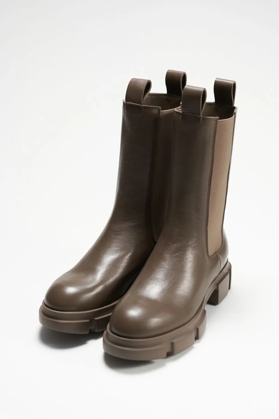 In Kaki. Midden Chelsea-Laarzen Gemaakt Van Glad Leer Met Een Grof Profiel. Langwerpig Chelsea-Silhouet. Elastische Inzetstukken. Ronde Dop. Twee Treklussen Op De Schacht. Subtiele Branding Aan De Buitenkant. Een Ontspannen En Toch Expressieve Stijl Die De Aandacht Trekt.Onze Schoenen Zijn Ontworpen In Kopenhagen En Vervaardigd In Europa. Het Leer Komt Uit Geselecteerde, Door Een Familie Gerunde Fabrieken In Italië.