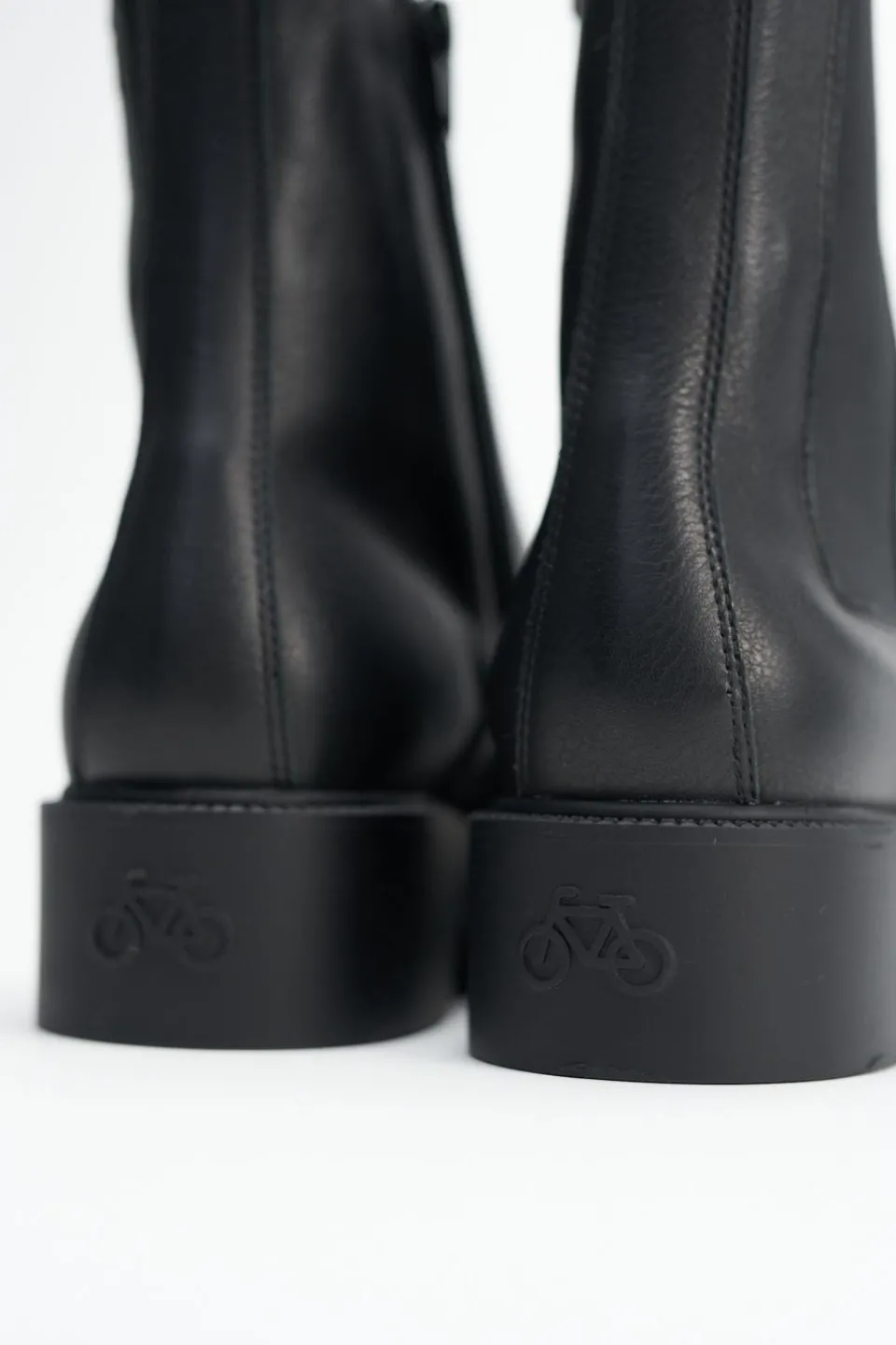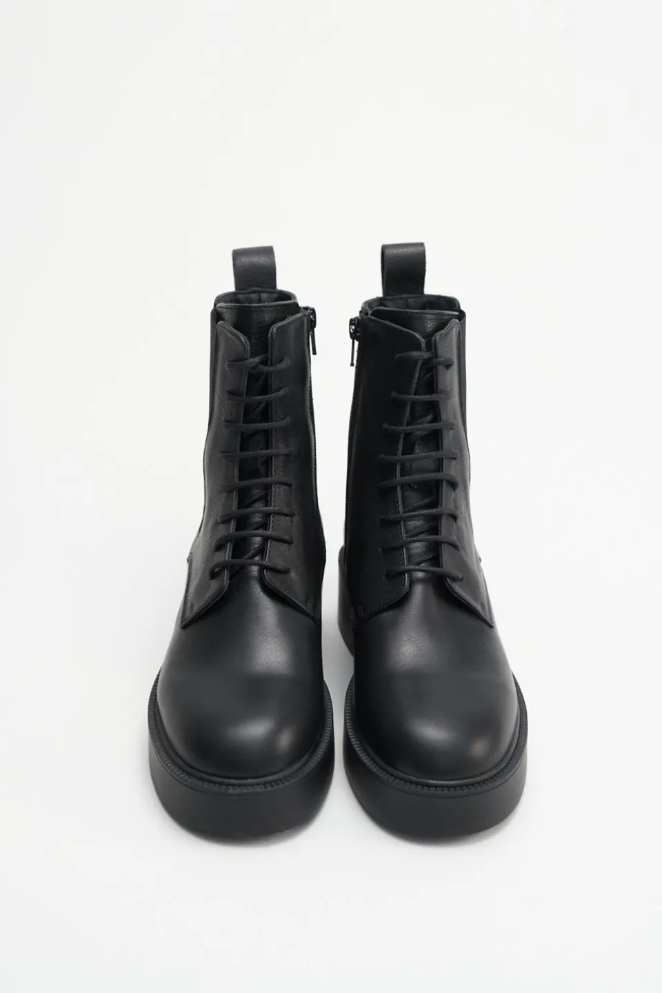 In Het Zwart. Chelsea Boots Met Veters Van Glad Leer. Enkelhoog Gevechtssilhouet. Met Contrasterende Elementen, Tonale Veters En Elastische Inzetstukken. Trek De Lus Aan De Schacht. Een Chelsea-Stijl Die Comfortabel, Stijlvol En Veelzijdig Is.Onze Schoenen Zijn Ontworpen In Kopenhagen En Gemaakt In Europa. Het Leer Komt Uit Geselecteerde, Door Een Familie Gerunde Fabrieken In Italië.