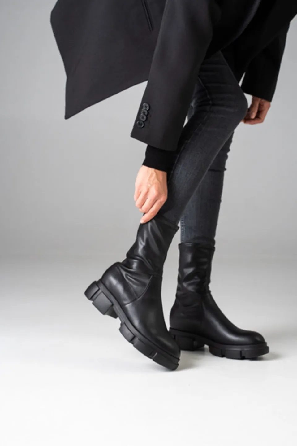 In Het Zwart. Middelhoge Laarzen Gemaakt Van Veganistisch Nappaleer Met Een Lichte Stretch. Slank Silhouet. Een Minimalistische Maar Veelzijdige Stijl.Onze Schoenen Zijn Ontworpen In Kopenhagen En Gemaakt In Europa. Het Leer Komt Uit Geselecteerde, Door Een Familie Gerunde Fabrieken In Italië.
