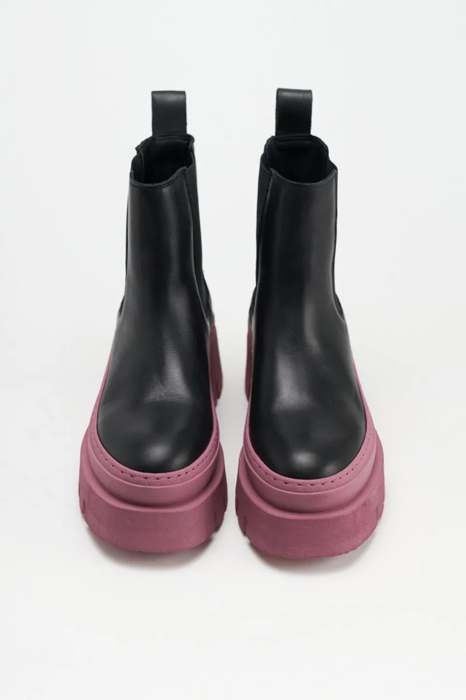 In Zwart En Fuchsia. Chelsealaarzen Gemaakt Van Glad Leer. Enkelhoog Silhouet Met Een Ronde Neus. Elastische Inzetstukken. Trek De Lus Aan De Schacht. Goudkleurig Logo Aan De Buitenkant. Expressieve Platformzolen Maken Deze Stijl Tot Een Blikvanger.Onze Schoenen Zijn Ontworpen In Kopenhagen En Vervaardigd In Europa. Het Leer Komt Uit Geselecteerde Familiebedrijven In Italië.