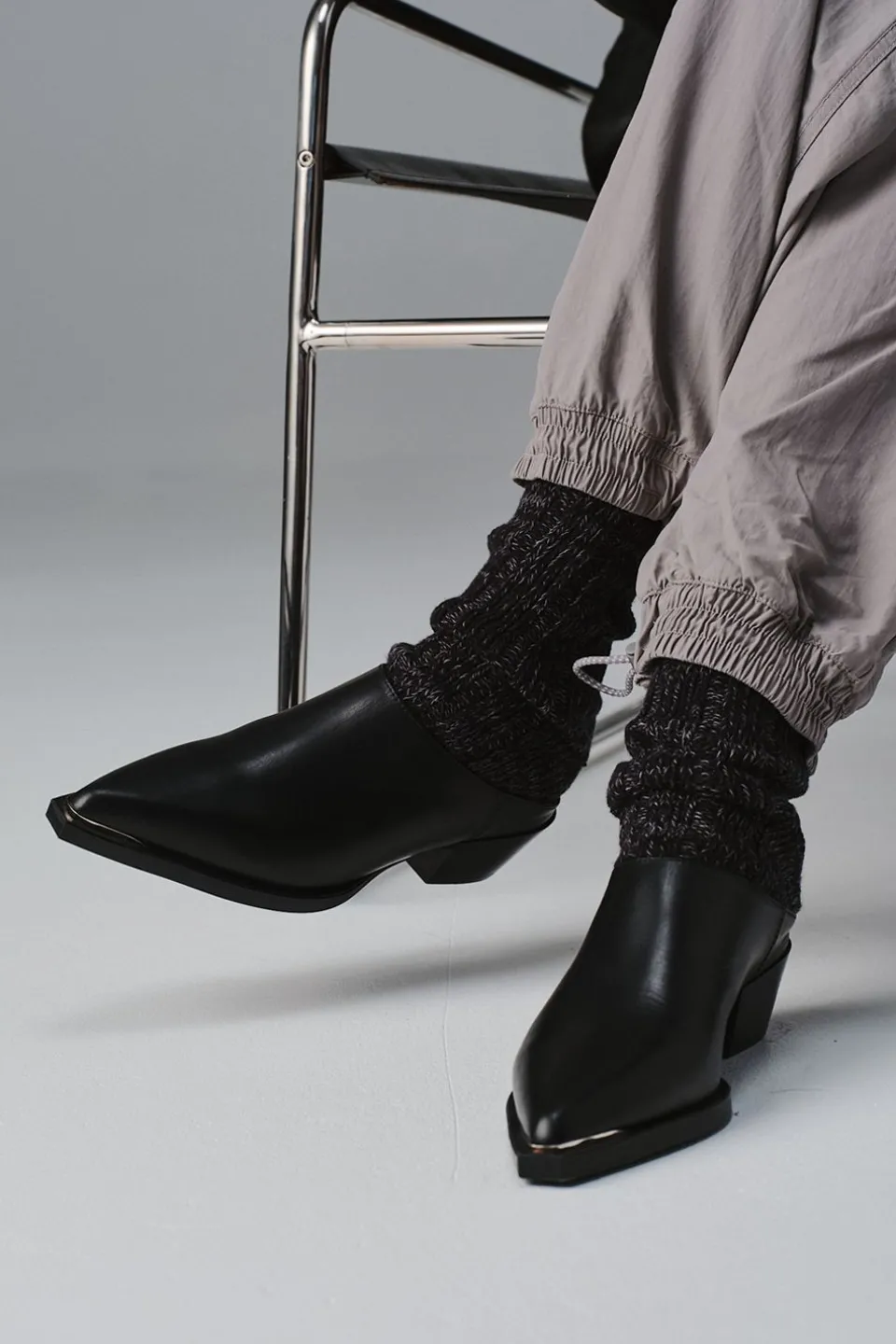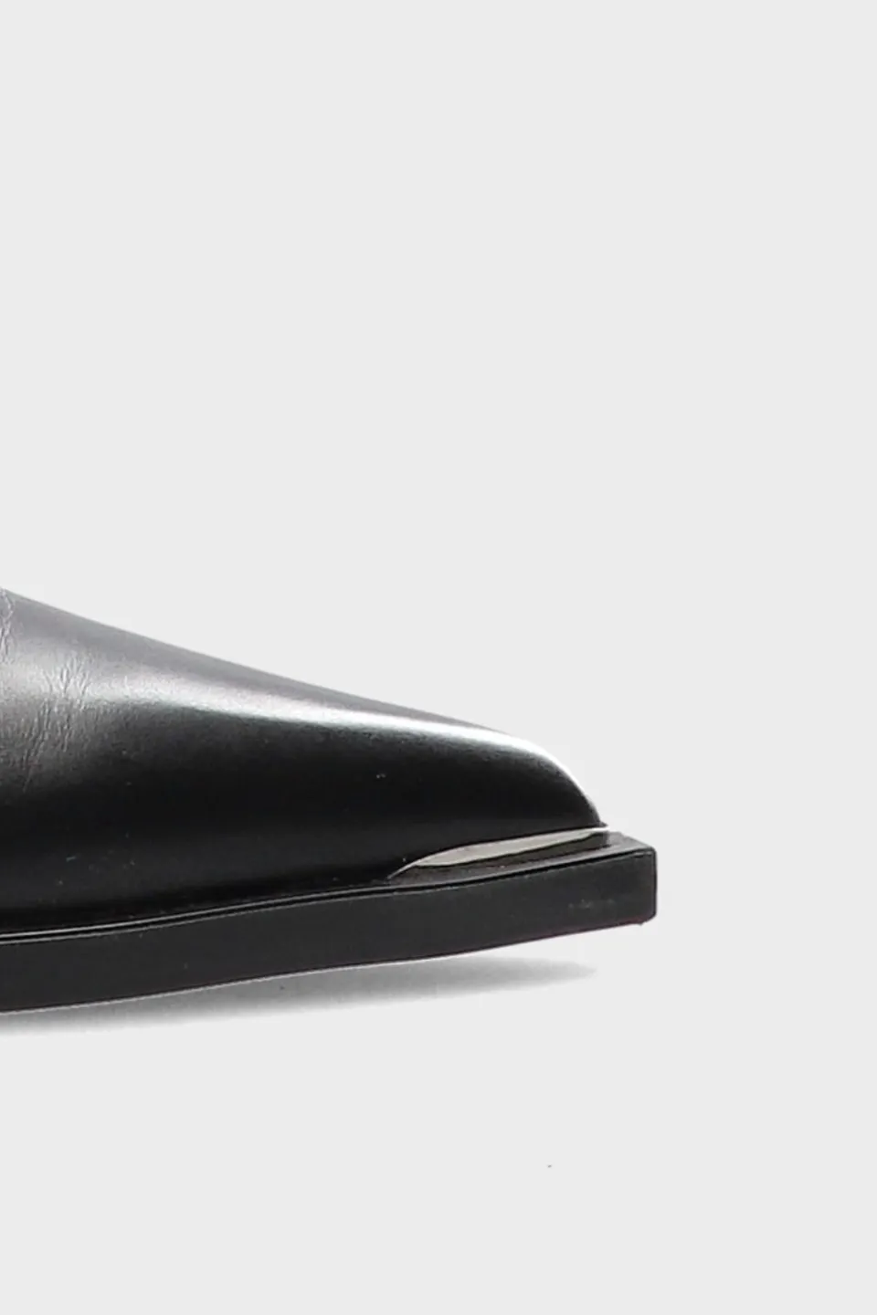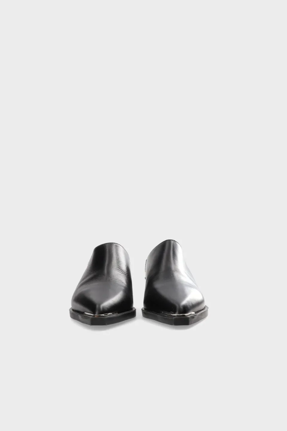 In Het Zwart. Texano Muiltjes Gemaakt Van Glad Leer. Slank Silhouet. Instapmodel. Kleurcontrasterende Binnenvoering. Rechthoekige, Spitse Neus Met Zilverkleurig Detail. Gladde Rubberen Zool Met Schuine Blokhak. Minimalistische Muiltjes In Westerse Stijl.Onze Schoenen Zijn Ontworpen In Kopenhagen En Gemaakt In Europa. Het Leer Is Afkomstig Van Geselecteerde, Door Een Familie Gerunde Fabrieken In Italië.