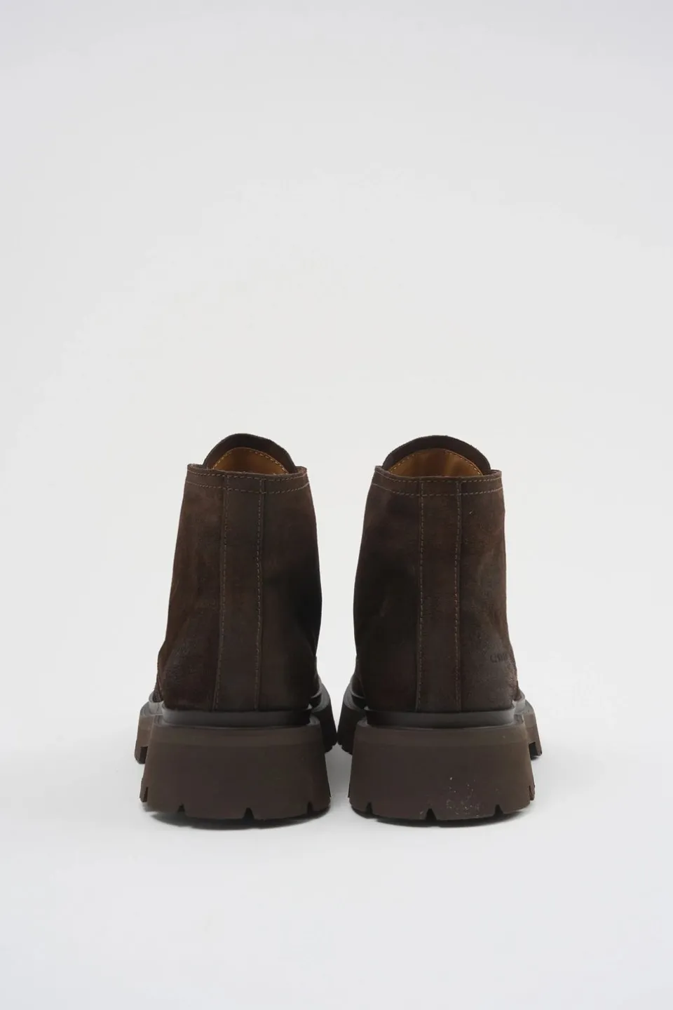 In Chocolade. Enkelhoge Veterschoenen Van Gewaxt Suède. Klassiek Silhouet. Modern Kantpatroon In Broguestijl. Contrasterende Elementen Met Geborduurde Details. Vetersluiting Aan De Voorkant. Ronde Neus. Robuuste Rubberen Zool Met Grof Profiel, Blokhak En Spatbord. Weerbestendige Laarzen Voor Koele Winterdagen.Onze Schoenen Zijn Ontworpen In Kopenhagen En Vervaardigd In Europa. Het Leer Is Afkomstig Van Geselecteerde, Door Een Familie Gerunde Fabrieken In Italië.