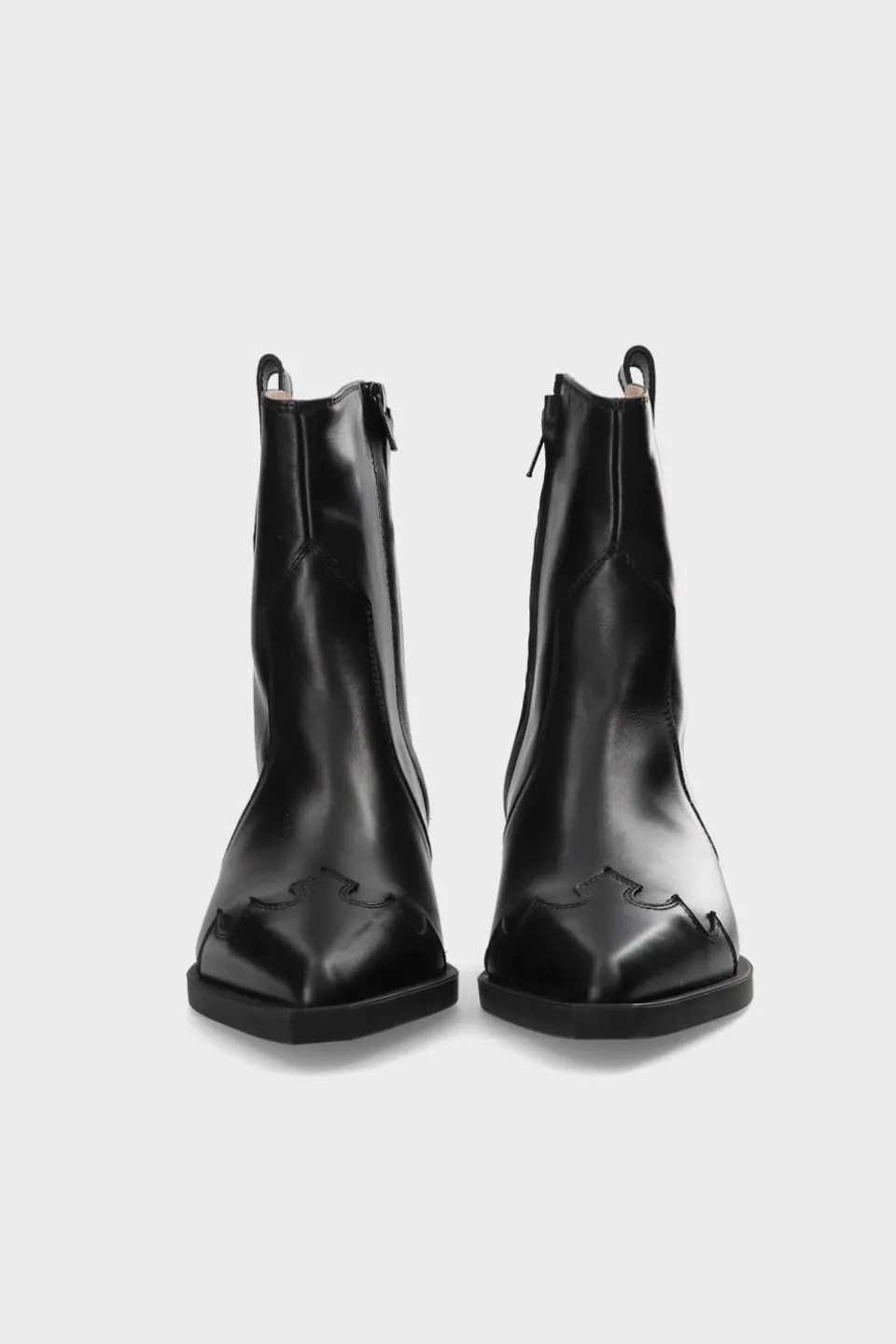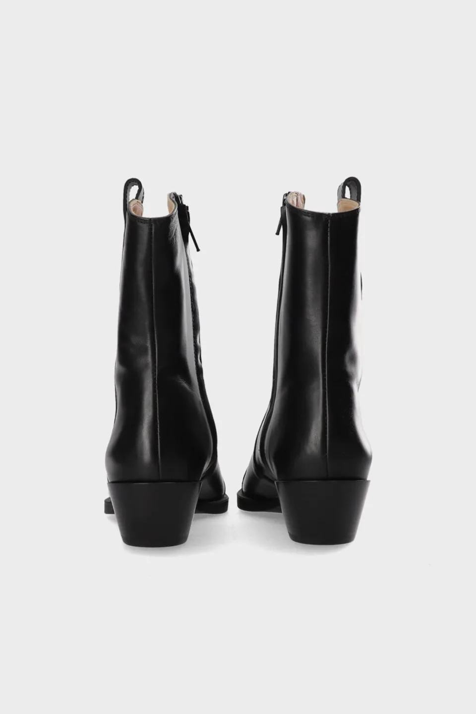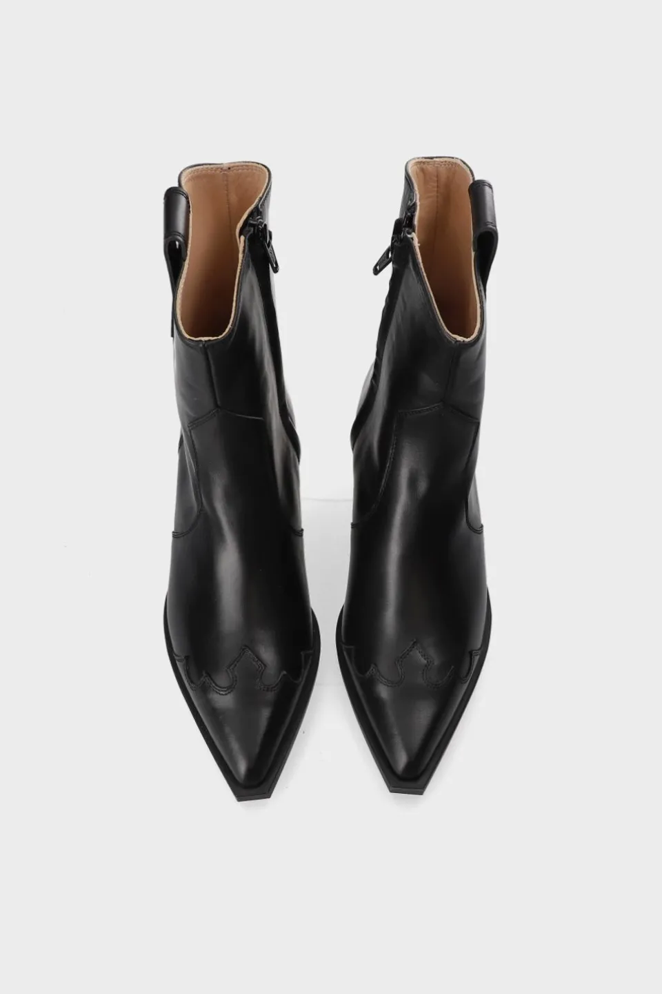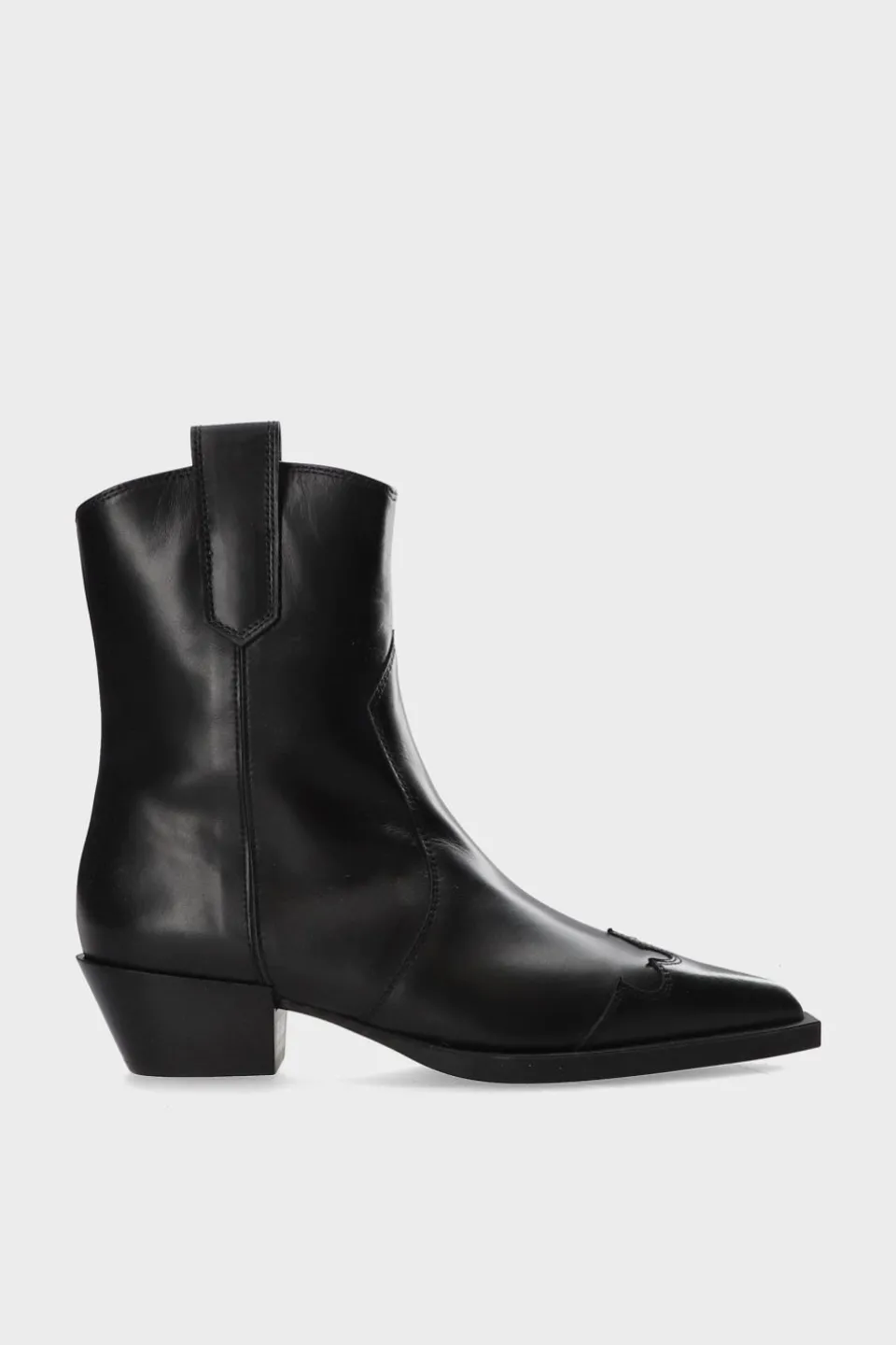 In Het Zwart. Enkelhoge Texano Enkellaarzen Gemaakt Van Glad Leer. Slank Silhouet. Brede Schacht. Contrasterende Elementen Met Applicaties En Geborduurde Details. Rits Aan De Binnenkant. Trek De Lus Aan De Buitenkant. Rechthoekig Gevormd, Spitse Neus. Gladde Rubberen Zool Met Schuine Blokhak. Elegante Texano-Enkellaarzen Voor Een Expressieve Look.Onze Schoenen Zijn Ontworpen In Kopenhagen En Vervaardigd In Europa. Het Leer Is Afkomstig Van Geselecteerde, Door Een Familie Gerunde Fabrieken In Italië.