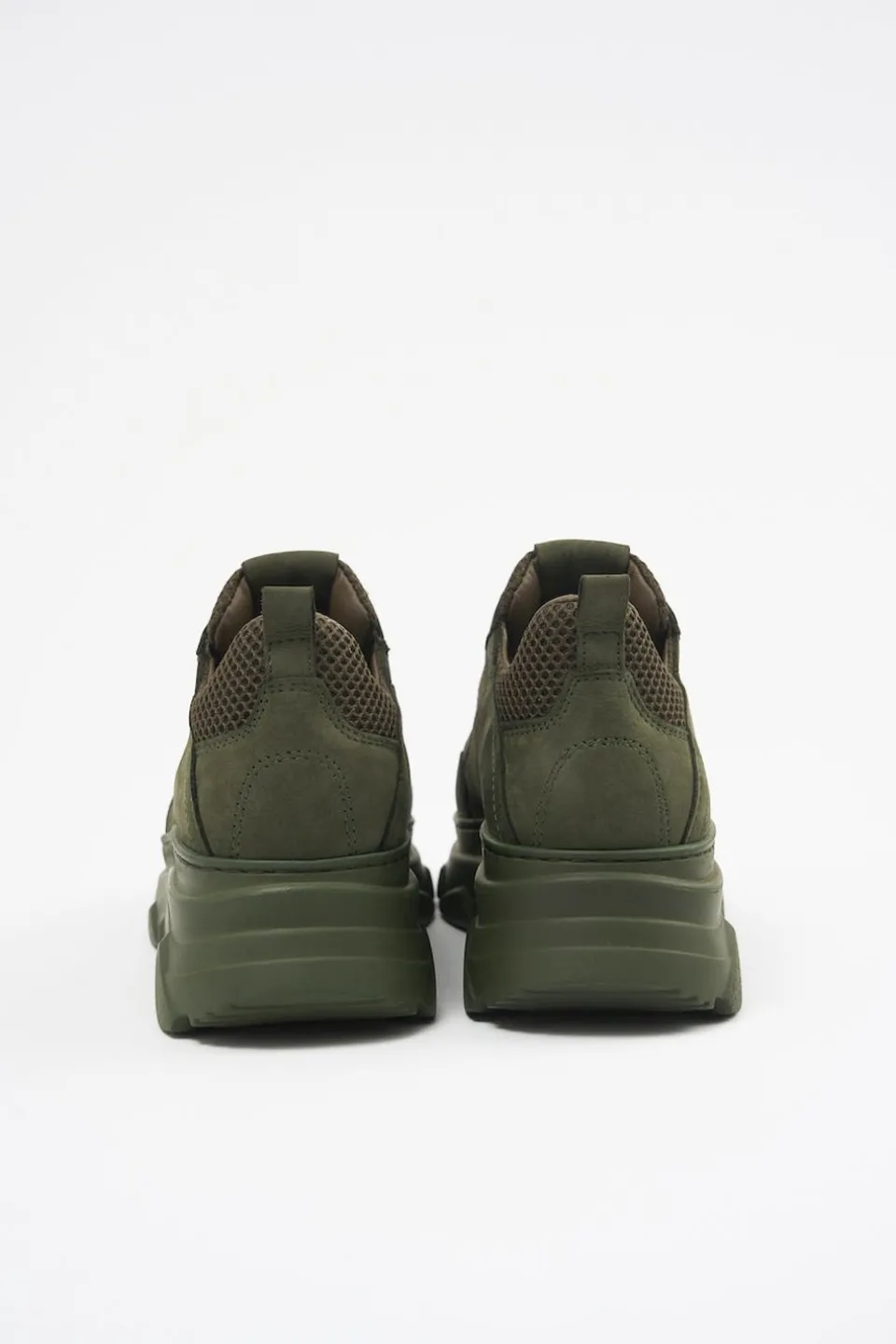 In Olijfgroen. Lage Sneakers Gemaakt Van Mesh En Suède. Grof Silhouet. Contrasterende Elementen Met Geborduurde Details En Mesh-Inzetstukken. Vetersluiting Aan De Voorkant. Logopatch Op De Tong Van De Schoen. Logo Aan De Buitenkant. Ronde Dop. Trek Het Lusje Aan De Achterkant. Dikke Platformzool Met Geometrische Details. Dikke Iconen In Gedempte Herfsttinten.Onze Schoenen Zijn Ontworpen In Kopenhagen En Gemaakt In Europa. Het Leer Is Afkomstig Van Geselecteerde, Door Een Familie Gerunde Fabrieken In Italië.