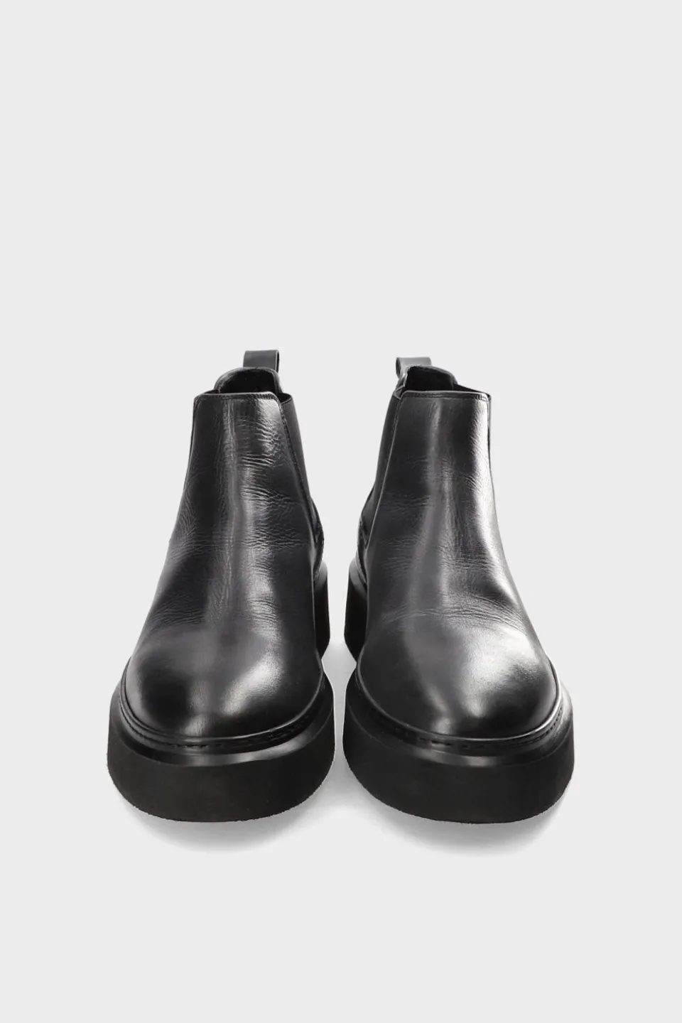 In Het Zwart. Chelsea Boots Gemaakt Van Gewaxt Leer Met Een Gepolijste Afwerking. Laag Chelsea-Silhouet. Iets Taps Toelopende Punt. Elastische Inzetstukken. Trek De Lus Aan De Schacht. Gestempeld Logo Aan De Buitenkant. Relaxte En Toch Elegante Chelsea-Laarzen Met Expressieve Details.Onze Schoenen Zijn Ontworpen In Kopenhagen En Vervaardigd In Europa. Het Leer Komt Uit Geselecteerde, Door Een Familie Gerunde Fabrieken In Italië.