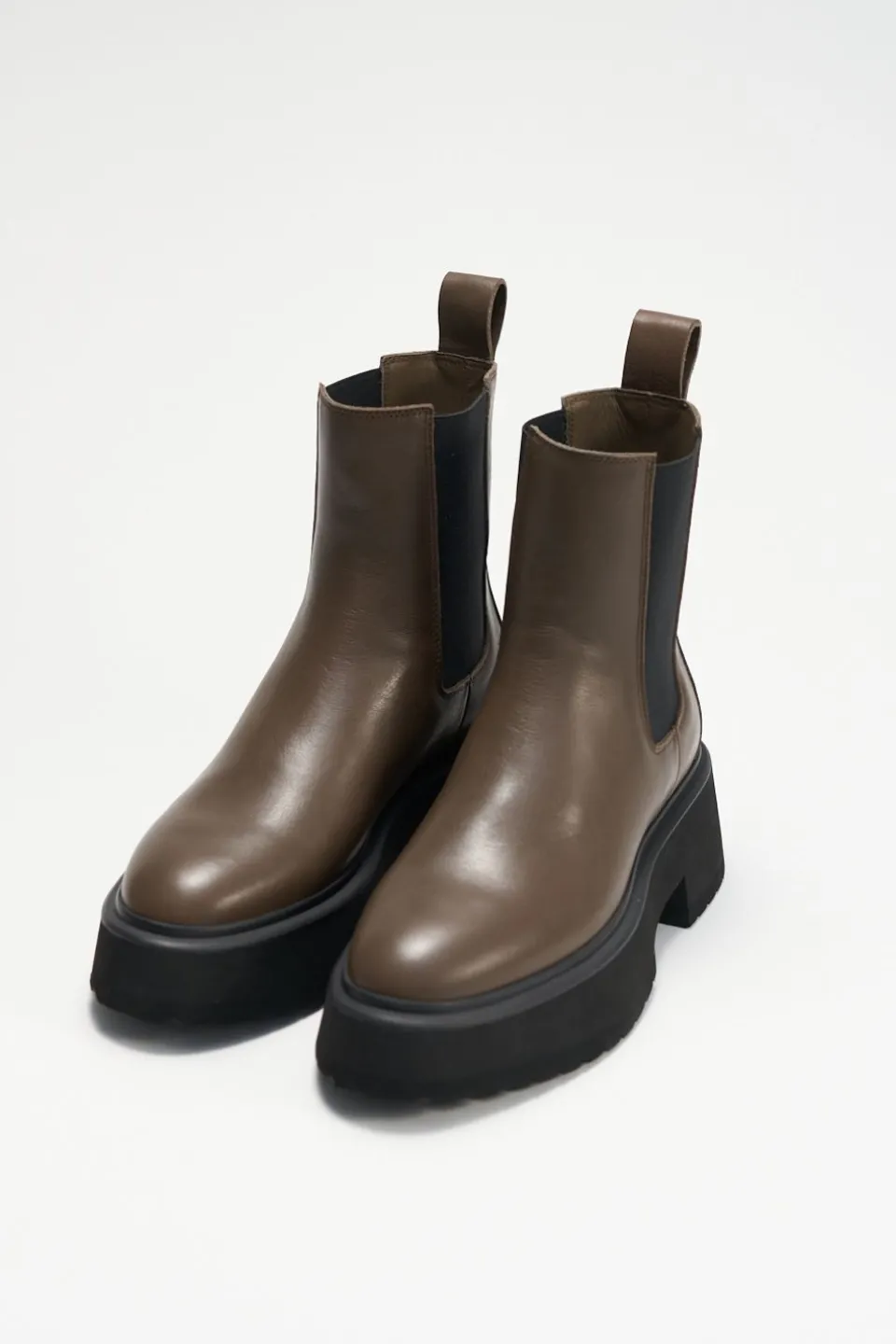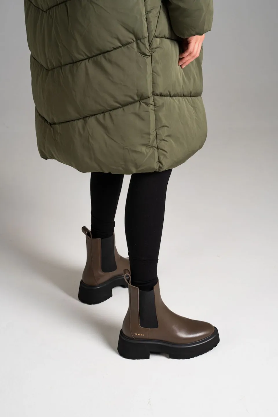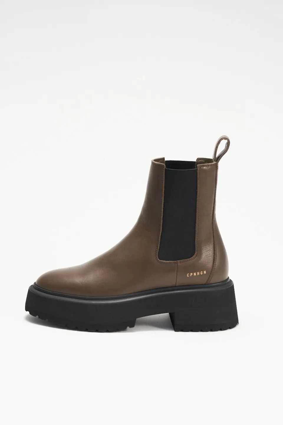 In Kaki. Chelsealaarzen Gemaakt Van Glad Leer. Enkelhoog Silhouet. Puntig. Elastische Inzetstukken. Subtiele Branding Aan De Buitenkant. Trek De Lus Aan De Schacht. Een Tijdloze Klassieker Met Iets Speciaals.Onze Schoenen Zijn Ontworpen In Kopenhagen En Vervaardigd In Europa. Het Leer Komt Uit Geselecteerde Familiebedrijven In Italië.