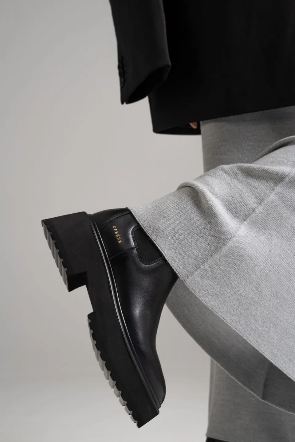 In Het Zwart. Chelsealaarzen Gemaakt Van Glad Leer. Enkelhoog Silhouet. Puntig. Elastische Inzetstukken. Subtiele Branding Aan De Buitenkant. Trek De Lus Aan De Schacht. Een Tijdloze Klassieker Met Iets Speciaals.Onze Schoenen Zijn Ontworpen In Kopenhagen En Vervaardigd In Europa. Het Leer Komt Uit Geselecteerde Familiebedrijven In Italië.