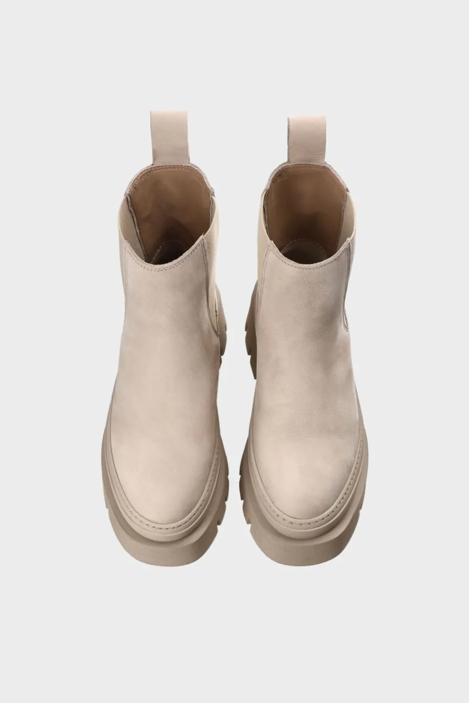In Amandel. Chelsealaarzen Gemaakt Van Zacht Nubuckleer. Enkelhoog Chelsea-Silhouet. Ronde Dop. Elastische Inzetstukken. Trek De Lus Aan De Schacht. Goudkleurig Logo Aan De Buitenkant. Toon Op Toon, De Ideale Metgezel Voor Koele Herfstdagen.Onze Schoenen Zijn Ontworpen In Kopenhagen En Vervaardigd In Europa. Het Leer Komt Uit Geselecteerde, Door Een Familie Gerunde Fabrieken In Italië.